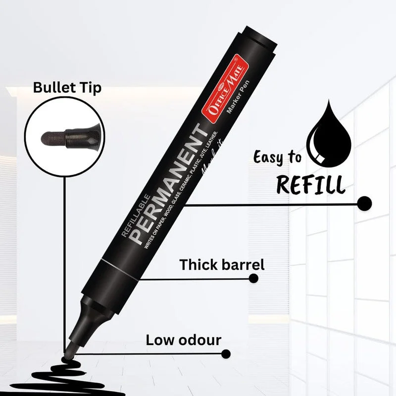 Be the first to review Refillable Permanent Black Marker Pen Set (10 Pcs) – Waterproof, Bullet Tip!