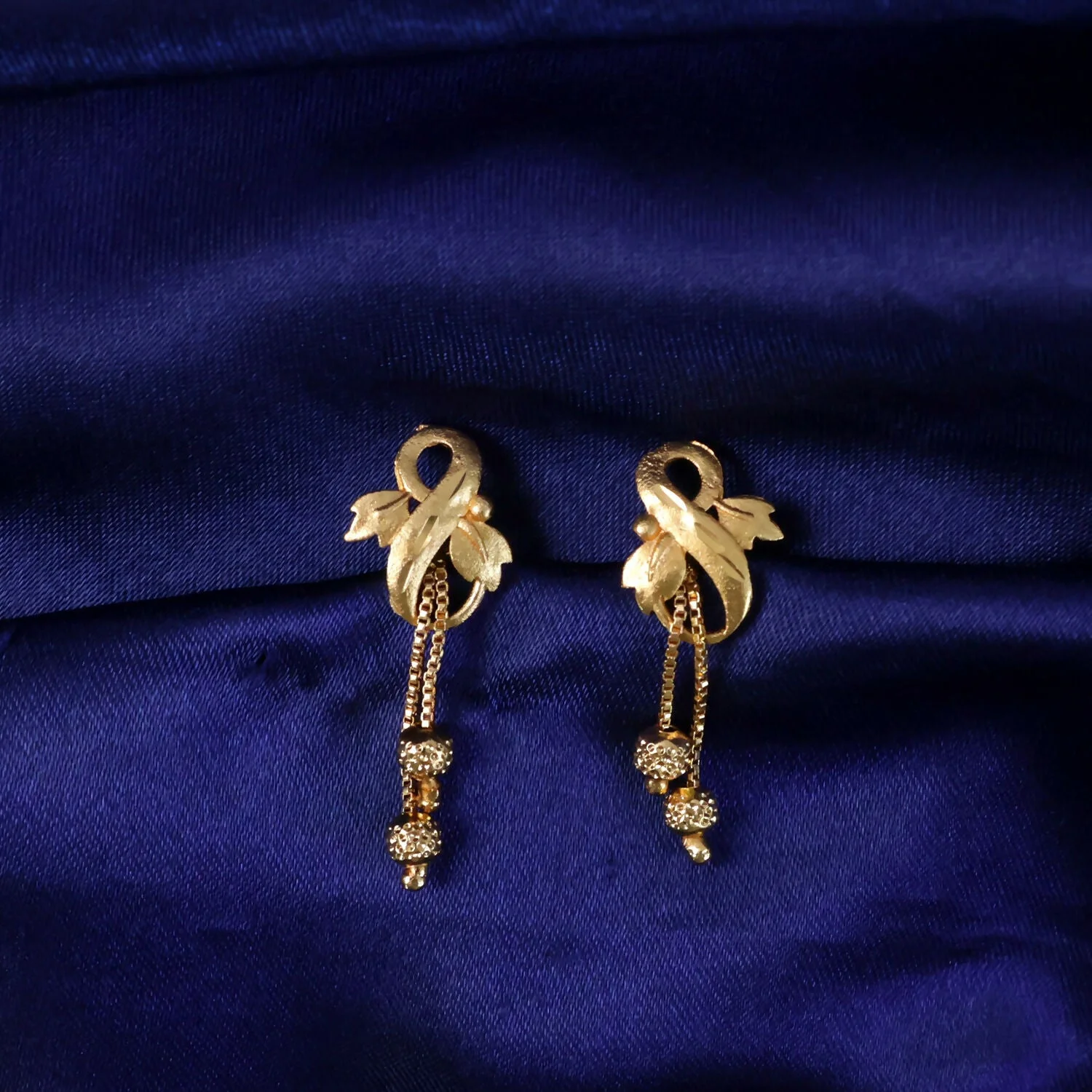 Be the first to review Regal Botanical Motif Gold Drop Earrings with Cascading Chain Bead Accents!