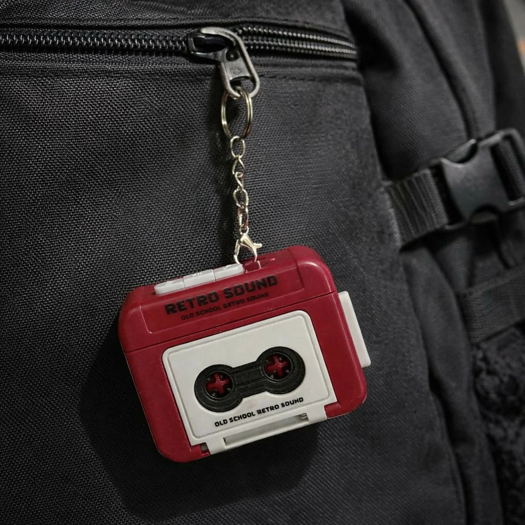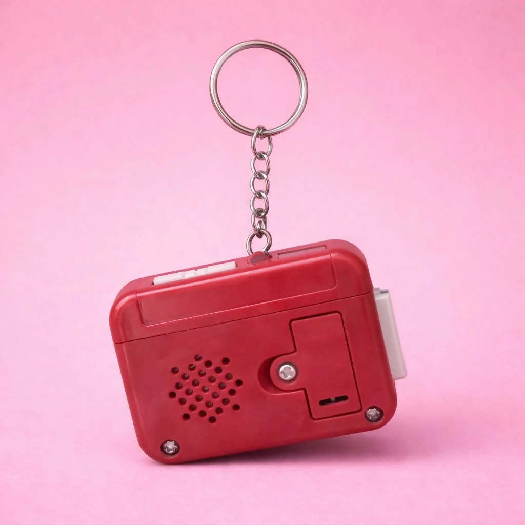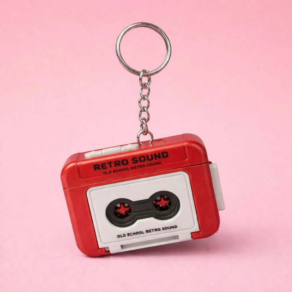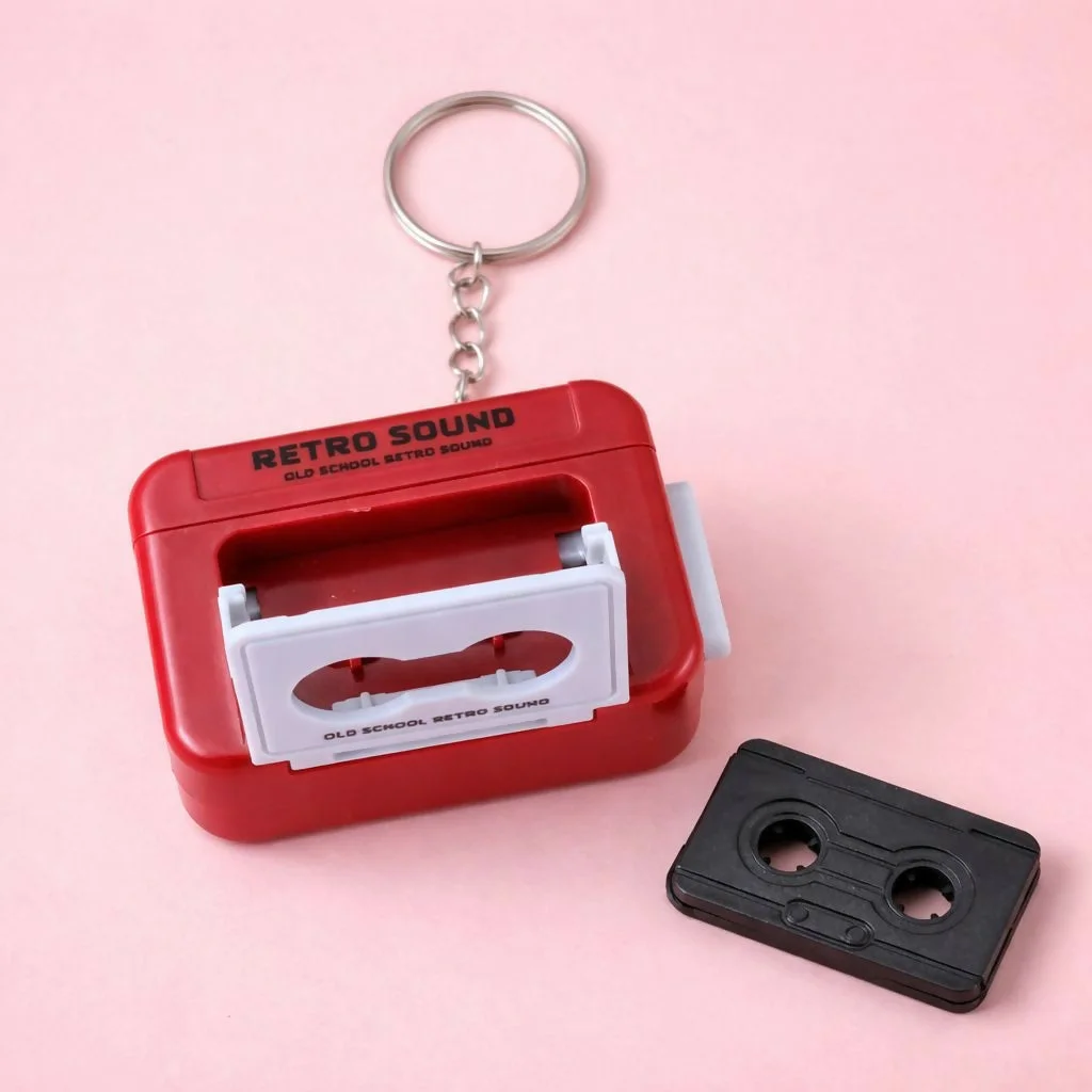 retro cassette keychain, cassette tape keychain toy, retro sound keychain, vintage cassette keychain, click sound keychain toy, novelty keychain gadget, retro music keychain, cassette player keychain, vintage style keychain accessory, bag charm keychain, retro gadget toy, collectible keychain toy, quirky keychain gift, mini cassette keychain, retro accessory keychain
