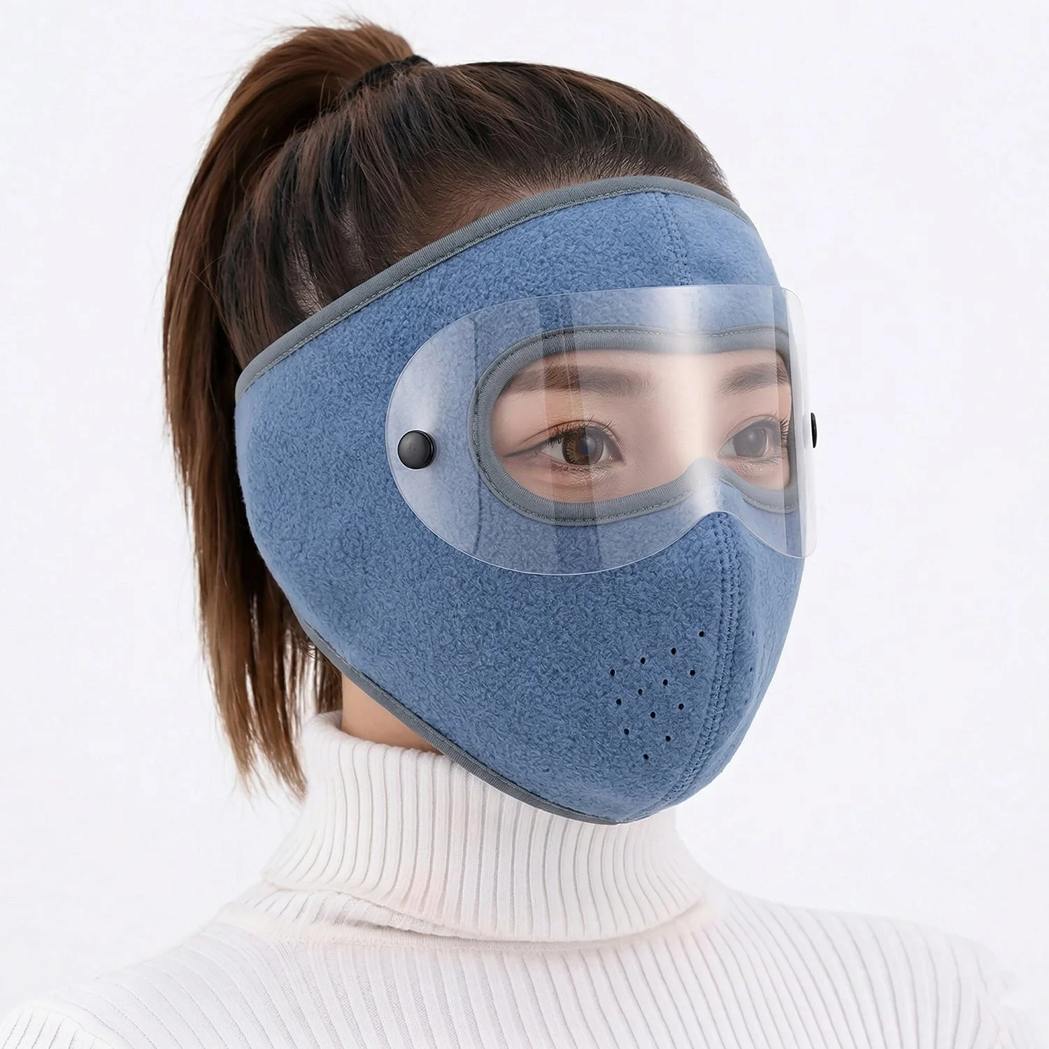 Stay protected and comfortable with this reusable face mask featuring a built-in transparent eye shield for enhanced coverage. Designed to provide protection from dust and environmental exposure, it combines face and eye safety in one convenient solution. The soft and breathable material ensures comfort during extended use, while the ergonomic design offers a secure and snug fit. The detachable or integrated eye shield helps maintain clear vision while adding an extra layer of protection. Ideal for everyday outdoor activities, this mask supports both safety and convenience.