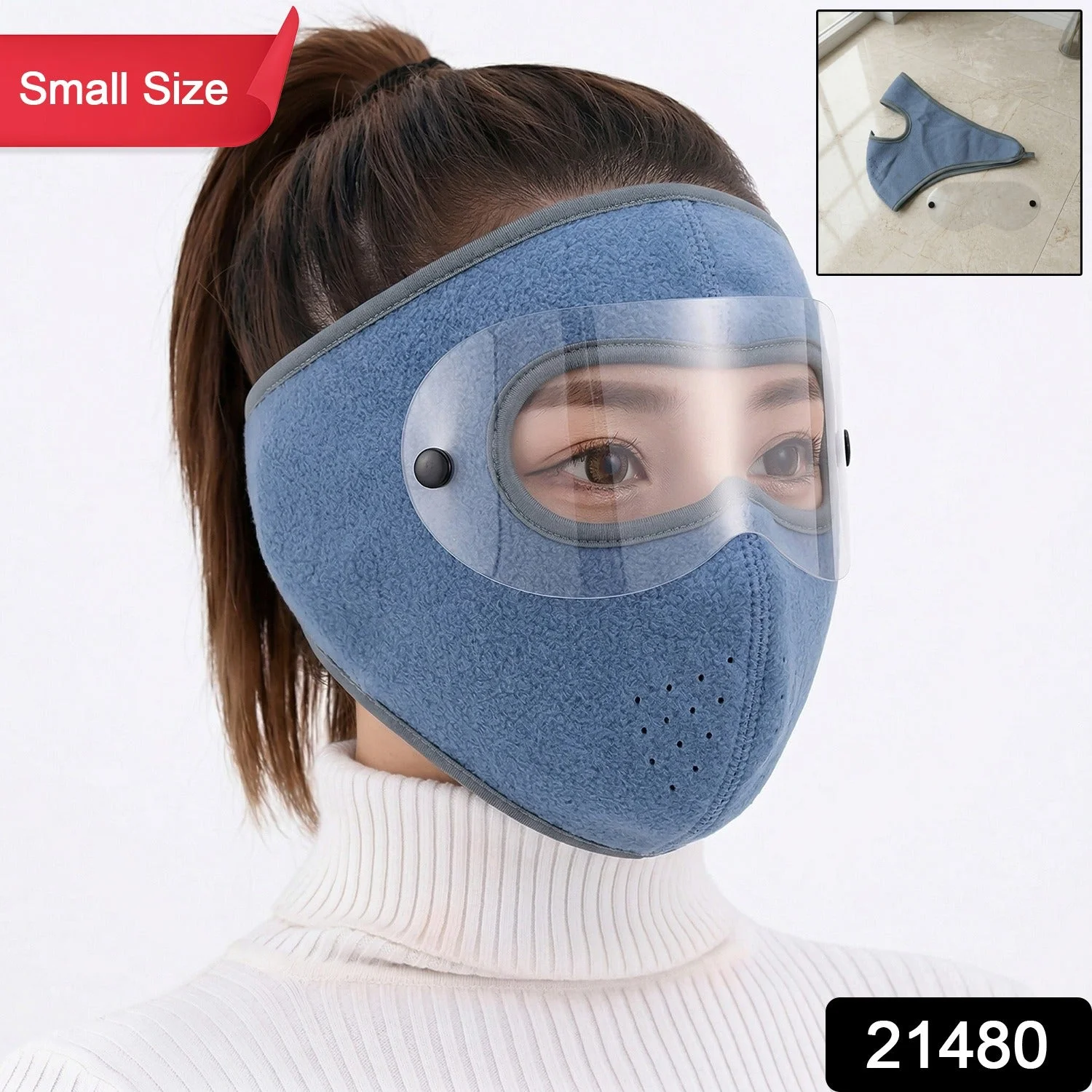 Reusable Anti Fog Face Mask with Eye Shield 1 Pc Small Size – Protective Face Cover with Transparent Eye Protection for Dust Pollution Outdoor Safety and Daily Use