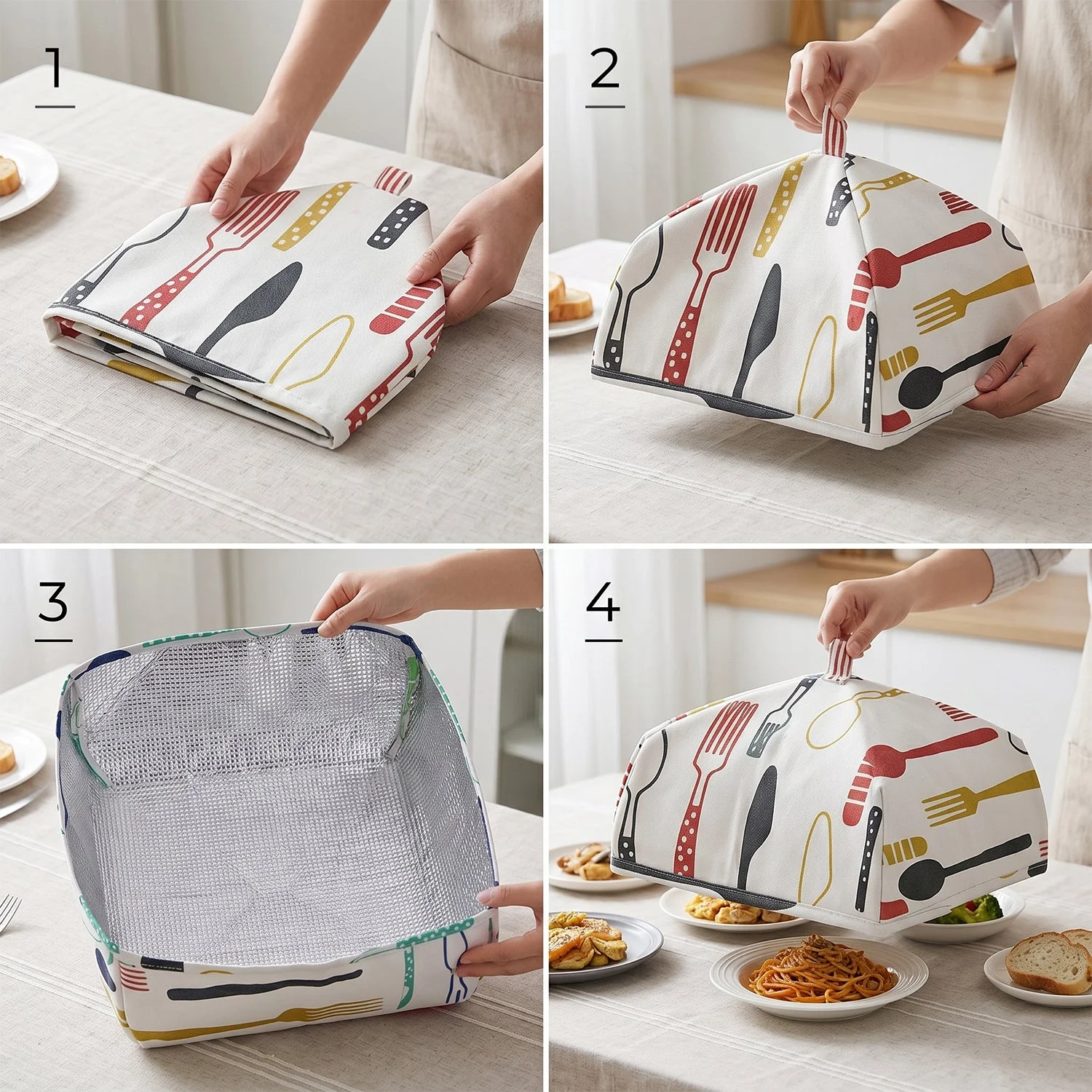 Keep your food fresh, clean, and protected with this reusable food cover designed for everyday kitchen use. This lightweight and foldable cover helps protect food items from dust, insects, and external contamination while maintaining hygiene. Its easy-to-use structure allows quick covering of plates, bowls, and dishes, making it perfect for daily meals and storage. The compact design ensures convenient storage when not in use. A practical addition to any kitchen, ideal for maintaining cleanliness and food safety.