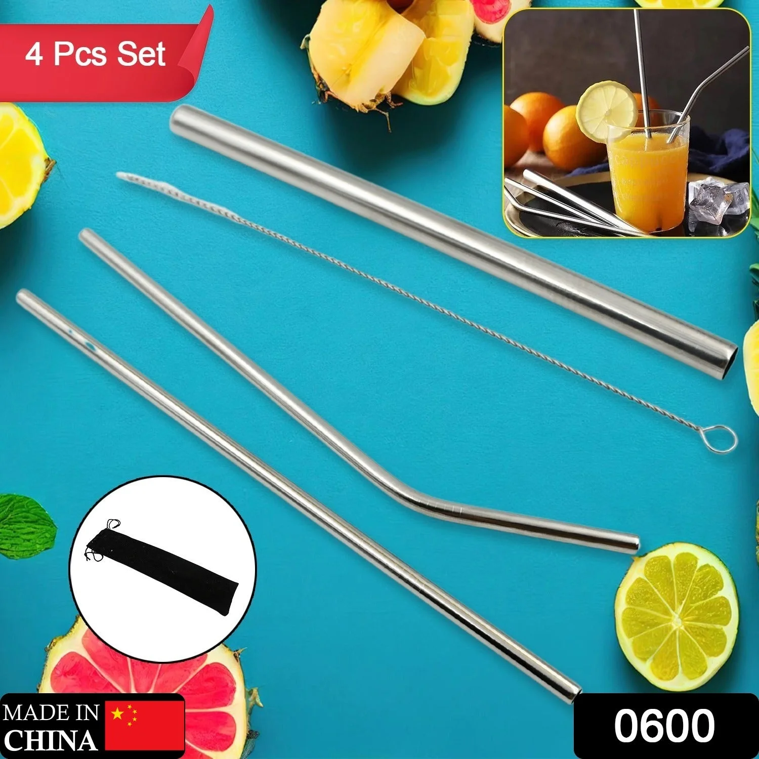 0600 Reusable Stainless Steel Straws with Travel Case Cleaning Brush Eco Friendly Extra Long Metal Straws Drinking Set of 4 (2 Straight straws, 1 Bent straws, 1 Brush)