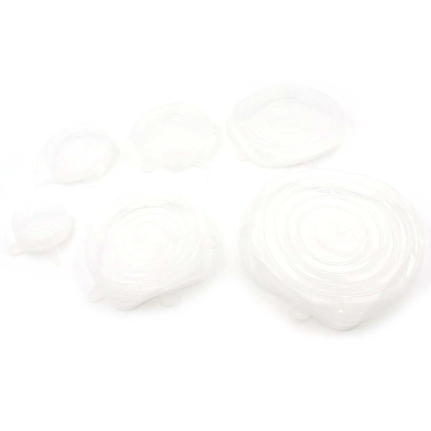 6-piece reusable stretchable food cover set, flexible sealing lids, bowl and container covers, cut fruit storage lids, fresh food storage lids, refrigerator food covers, kitchen storage silicone lids, multipurpose food sealing lids, airtight reusable lids, eco-friendly stretchable lids, leak-proof food covers, durable silicone food lids, versatile kitchen storage lids