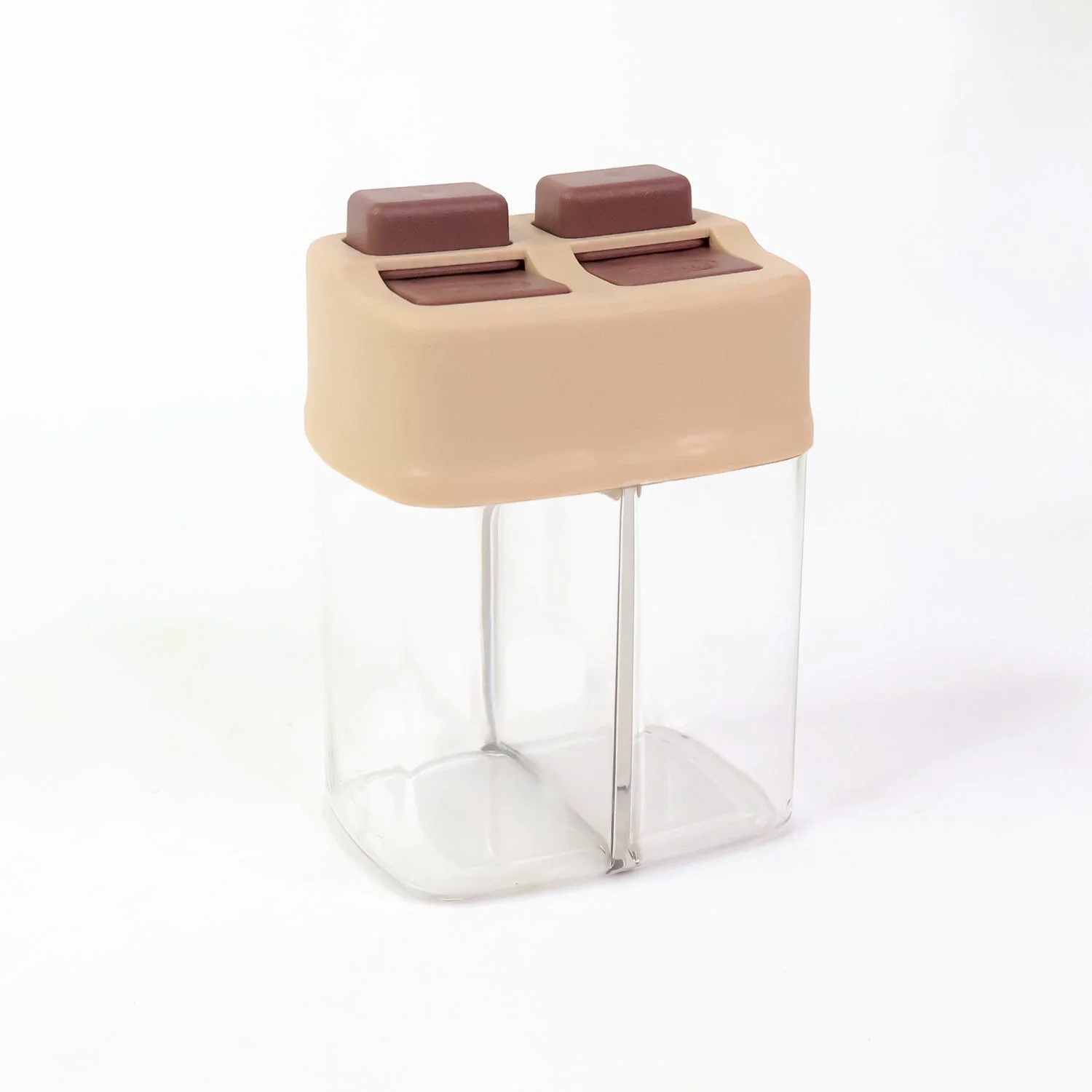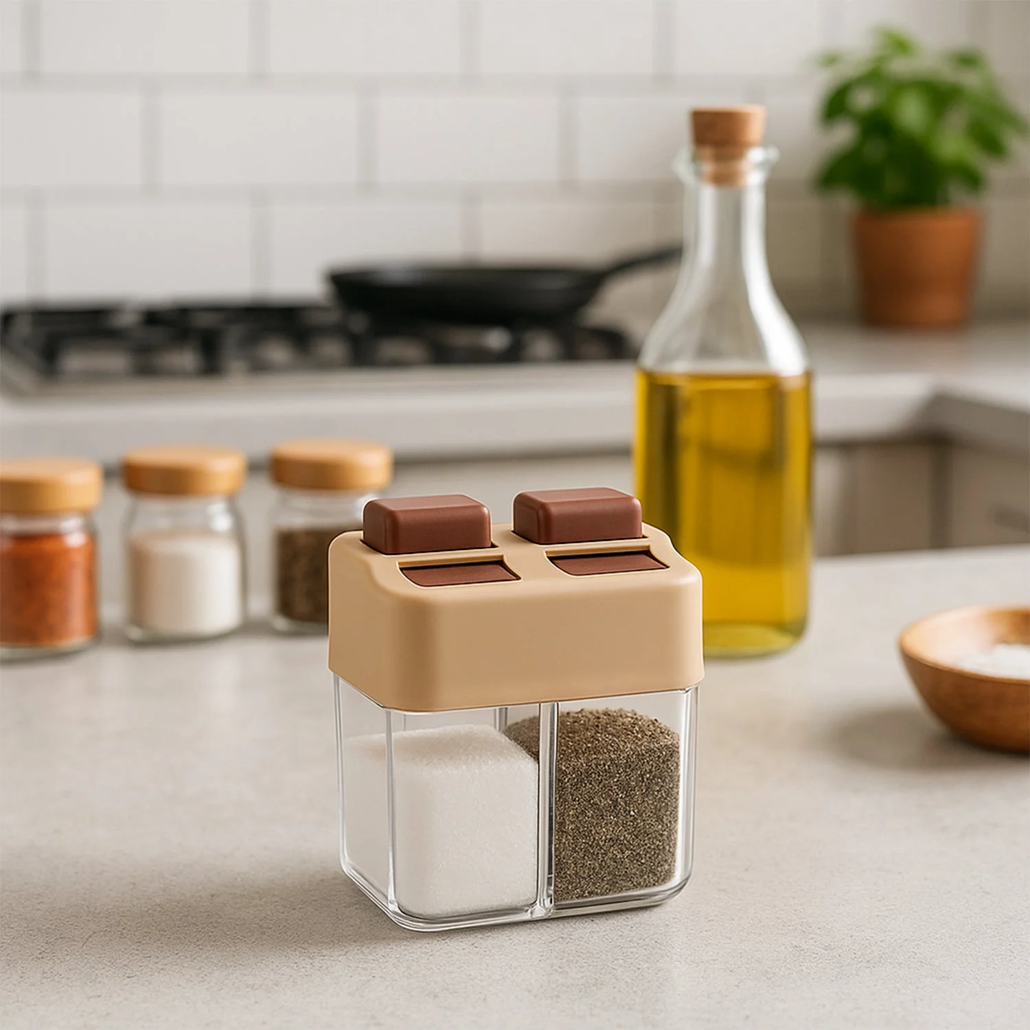 spice container, spice dispenser, seasoning jarmasala container, dual container, spice shaker, kitchen dispenser, condiments container, seasoning storage box,kitchen storage,masala storage, spice mixing,multipurpose kitchen container,2-in-1 spice container, dual dispenser jar, transparent spice jar, modular spice box, seasoning organizer