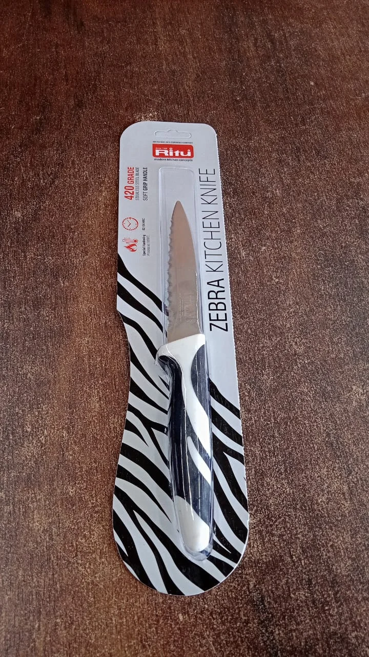 Ritu Zebra Kitchen Knife with Stainless Steel Serrated Blade and Stylish Ergonomic Handle – Multipurpose Vegetable, Fruit & Bread Cutter Knife for Daily Kitchen Use (1 Pc)