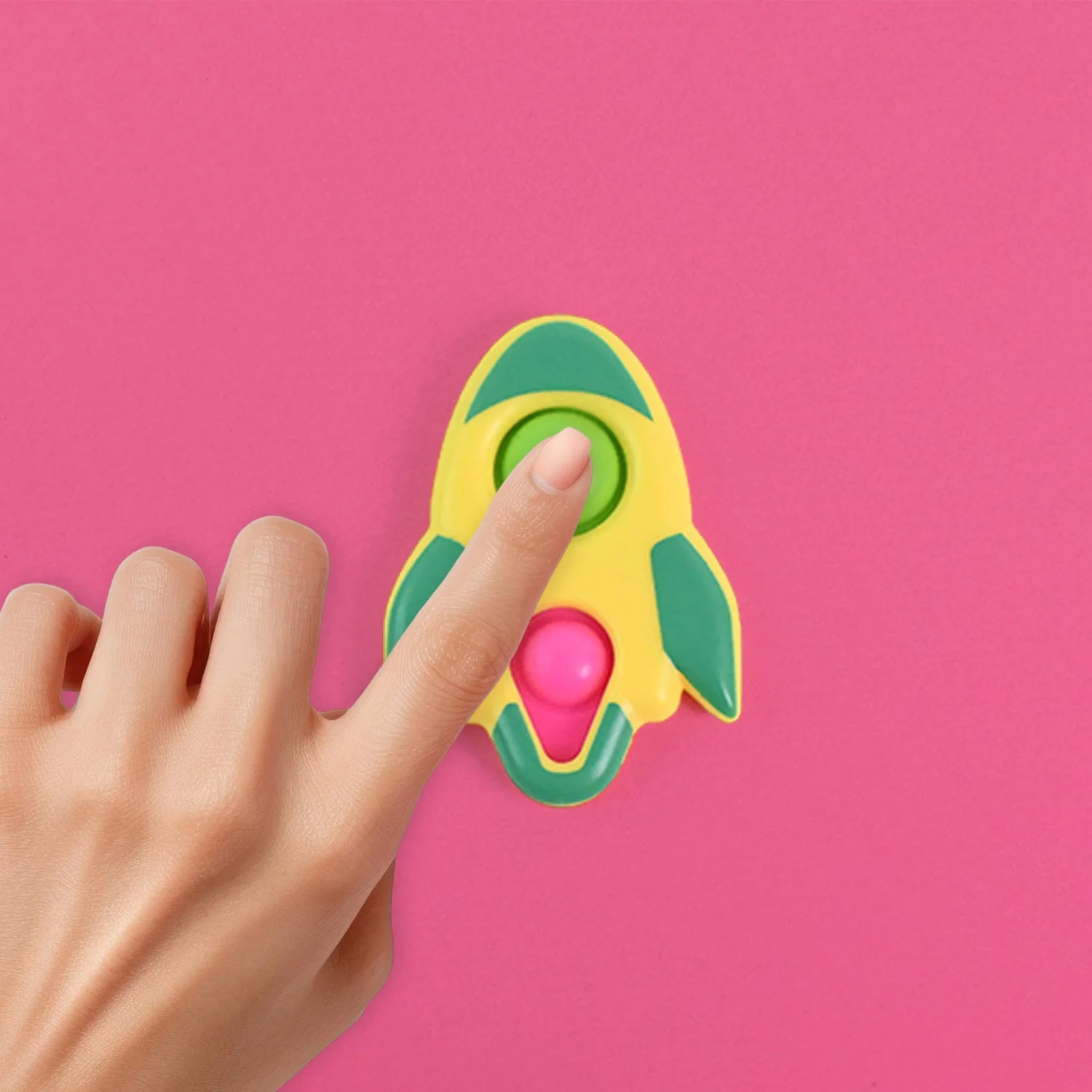 This Rocket Shaped Dimple Keychain Toy is a fun and practical stress relief solution designed for kids and adults alike. With its vibrant yellow, green, and pink color scheme and playful rocket design, it doubles as both a sensory toy and a cute keychain. Each popper bubble provides a satisfying tactile sensation that helps enhance focus and reduce anxiety. Small and lightweight, it fits easily into pockets or attaches to bags, making it the perfect on-the-go companion.
