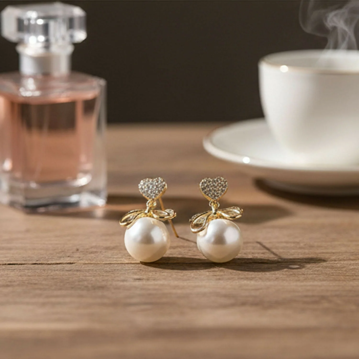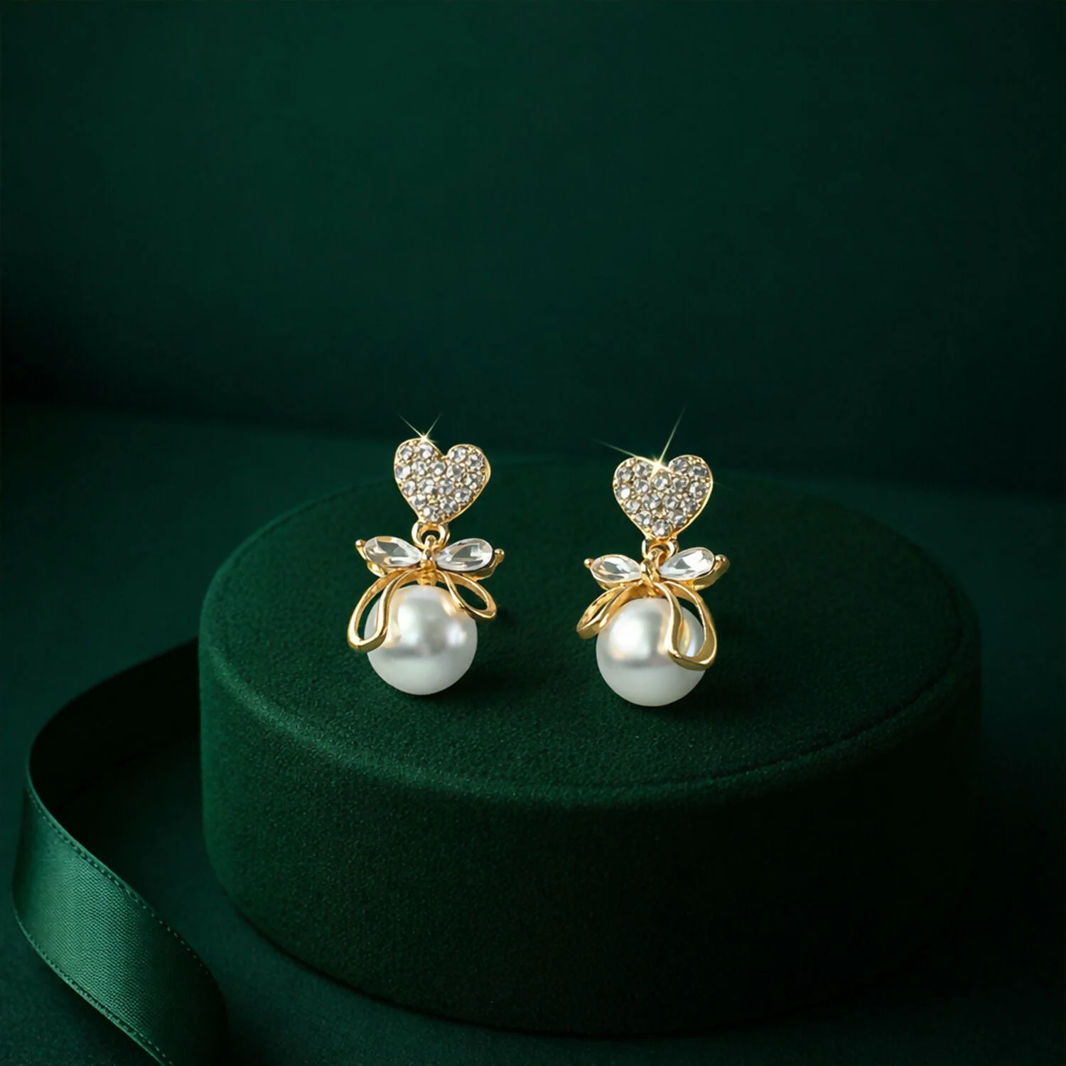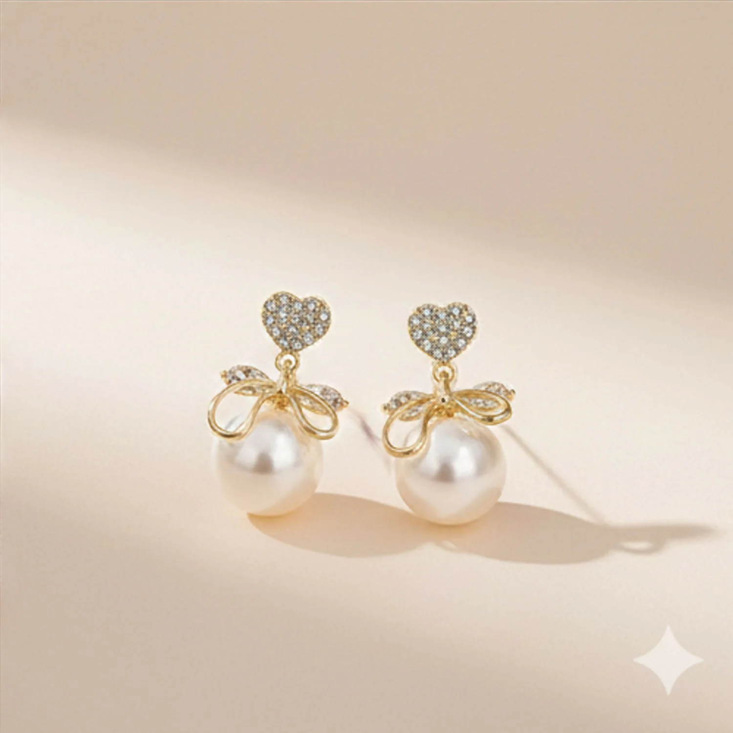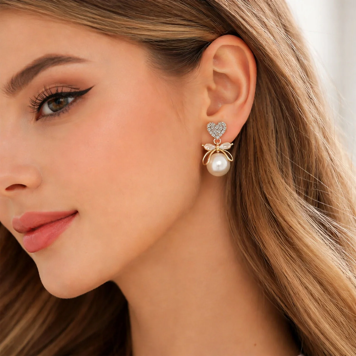 Be the first to review Romantic Heart Crystal & Pearl Bow Earrings – 14K Gold Plated Drop Earrings for Women!