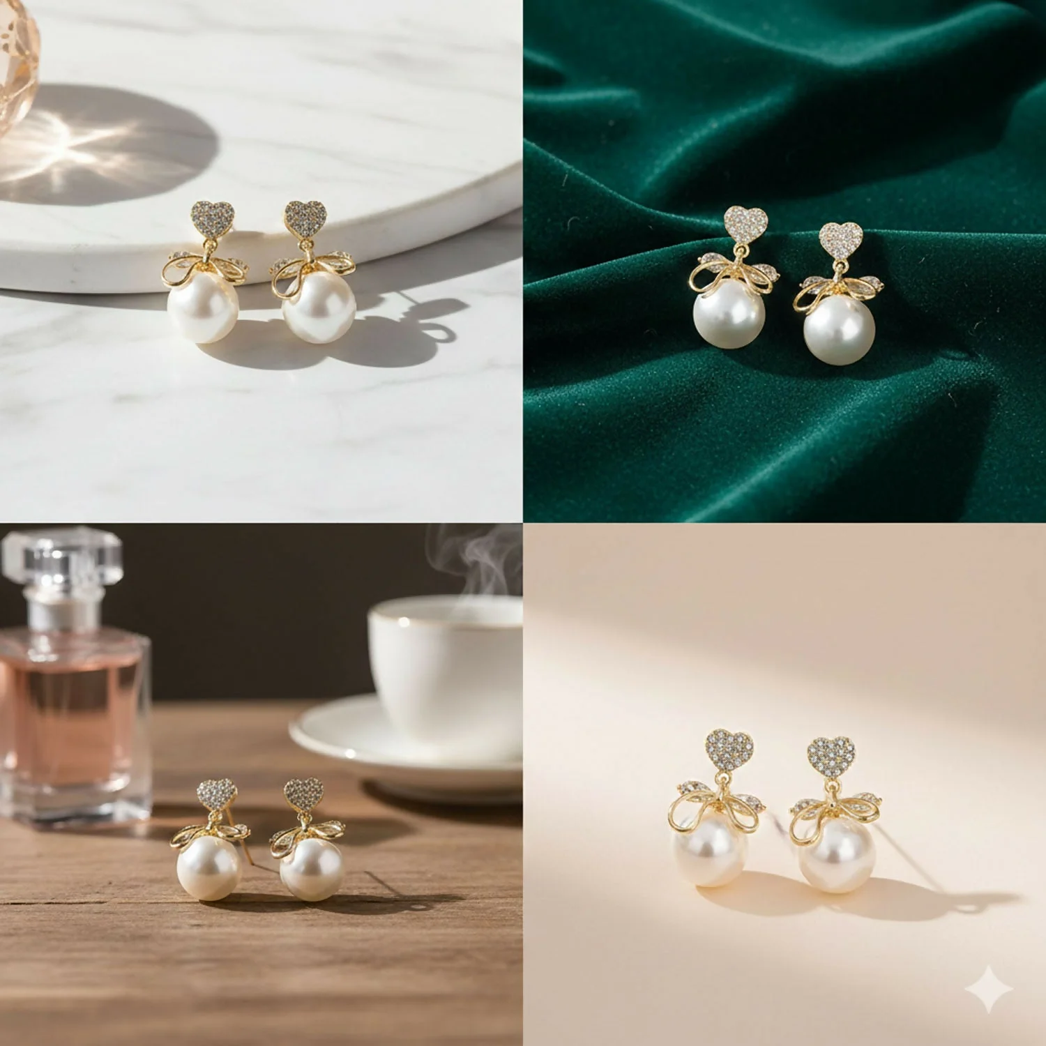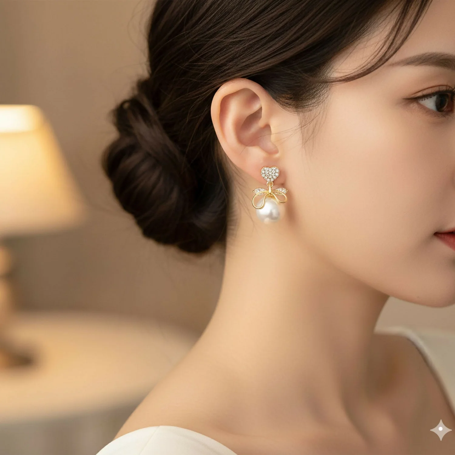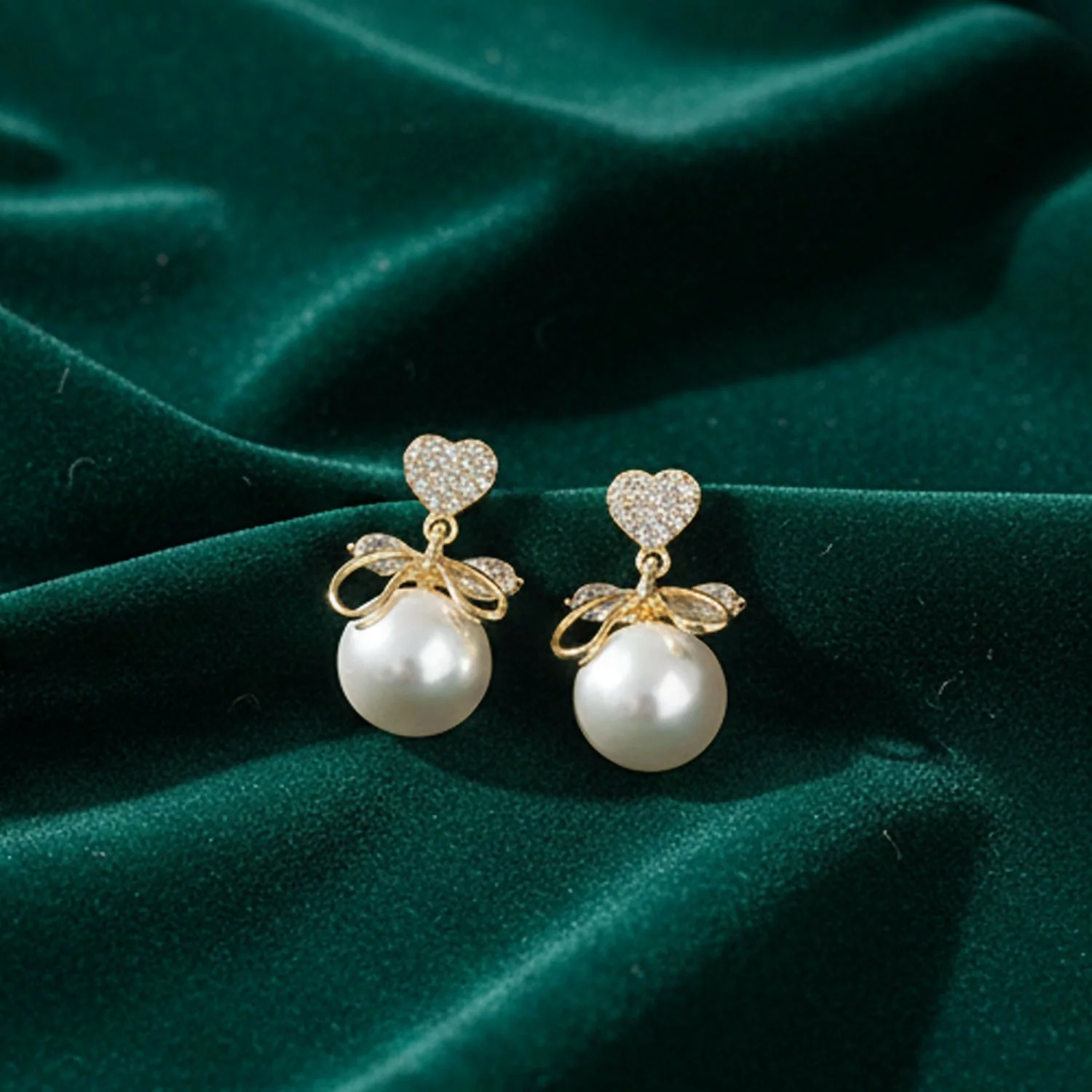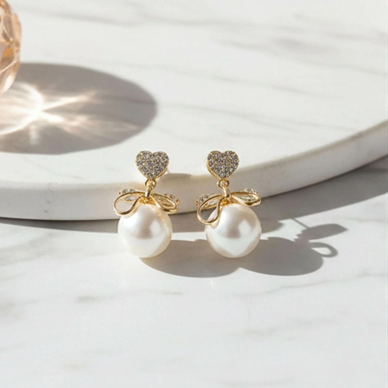 Be the first to review Romantic Heart Crystal & Pearl Bow Earrings – 14K Gold Plated Drop Earrings for Women!
