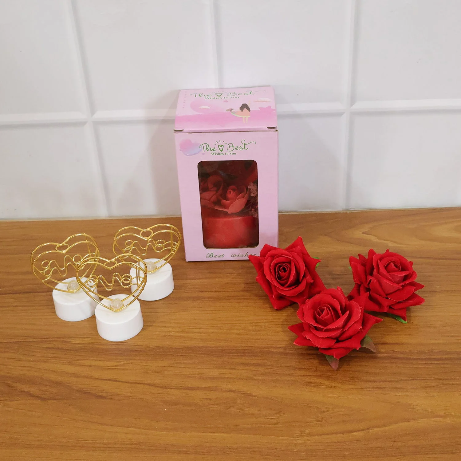 romantic heart love gift set, rose flower decorative set, candle holder décor set, elegant tabletop love décor, special occasion gift combo, anniversary gift décor, valentine’s day decoration, romantic home décor accessory, love-themed tabletop décor, heart and rose ornament set, decorative candle and flower combo, luxury romantic gift set