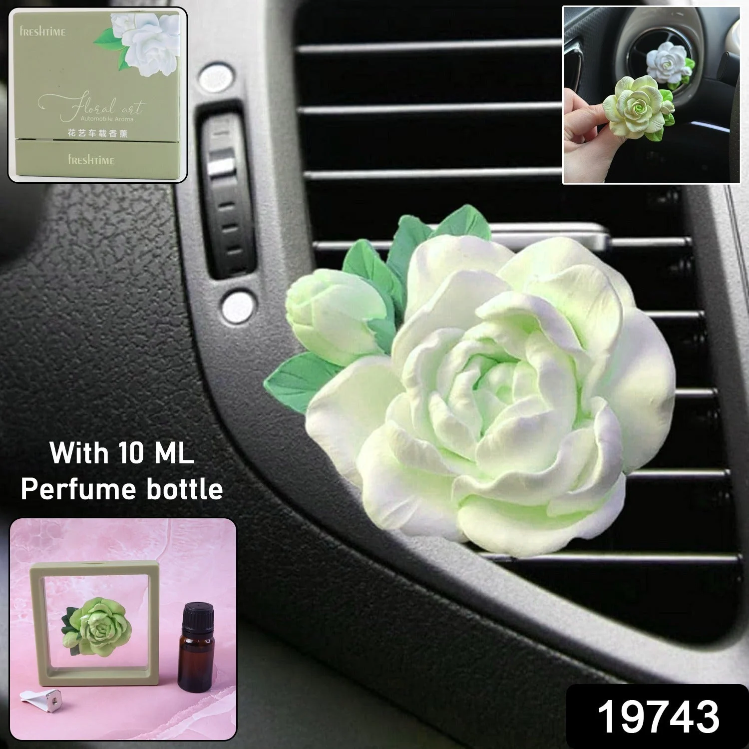 Floral decorative design: Beautiful rose-shaped freshener that doubles as an elegant car decor piece.