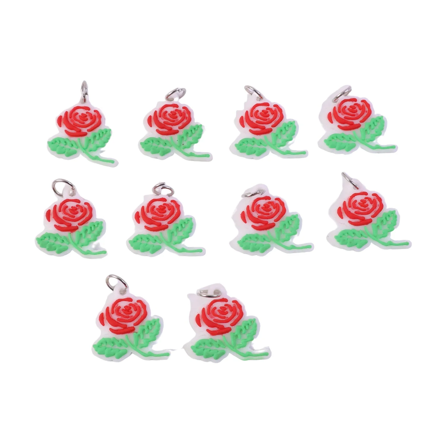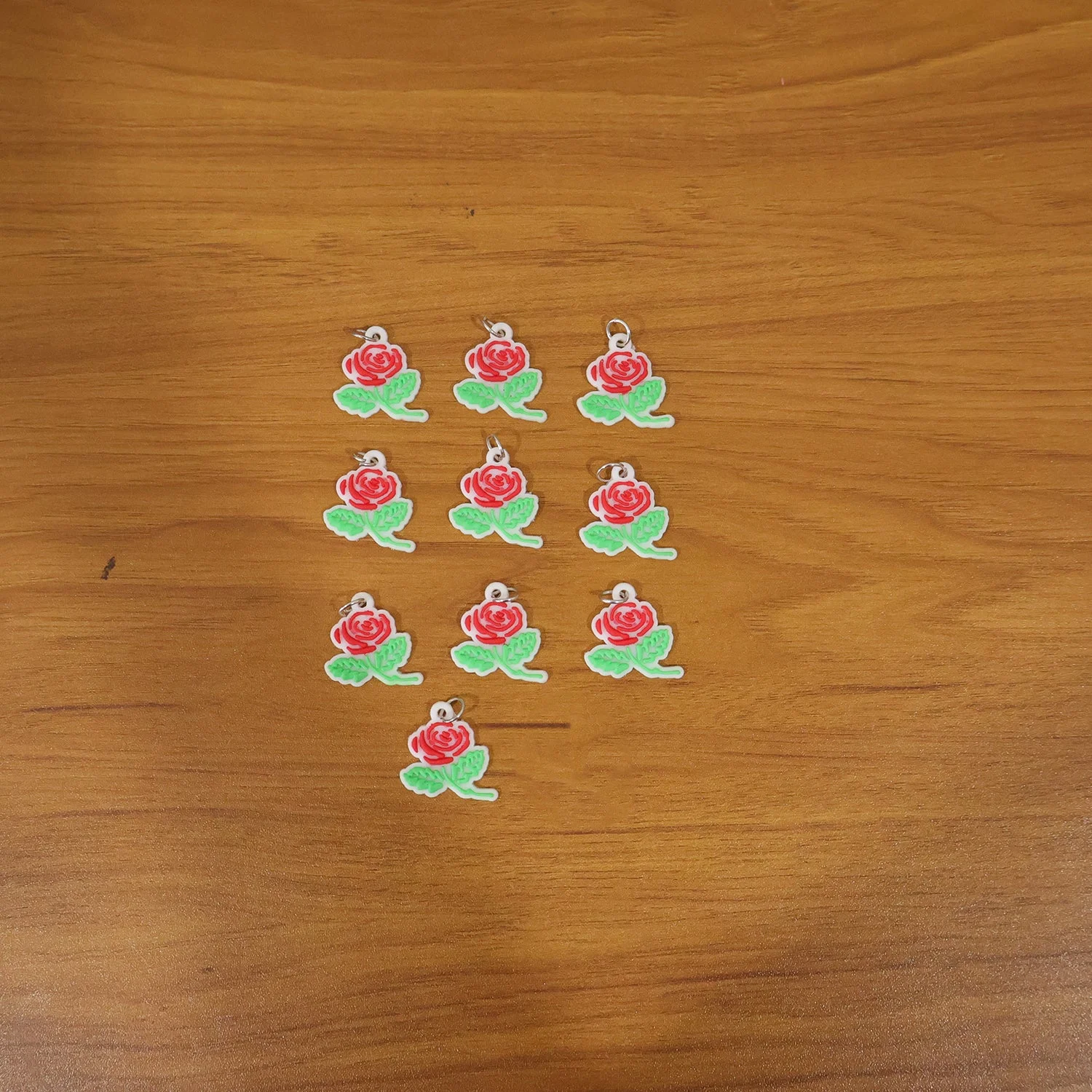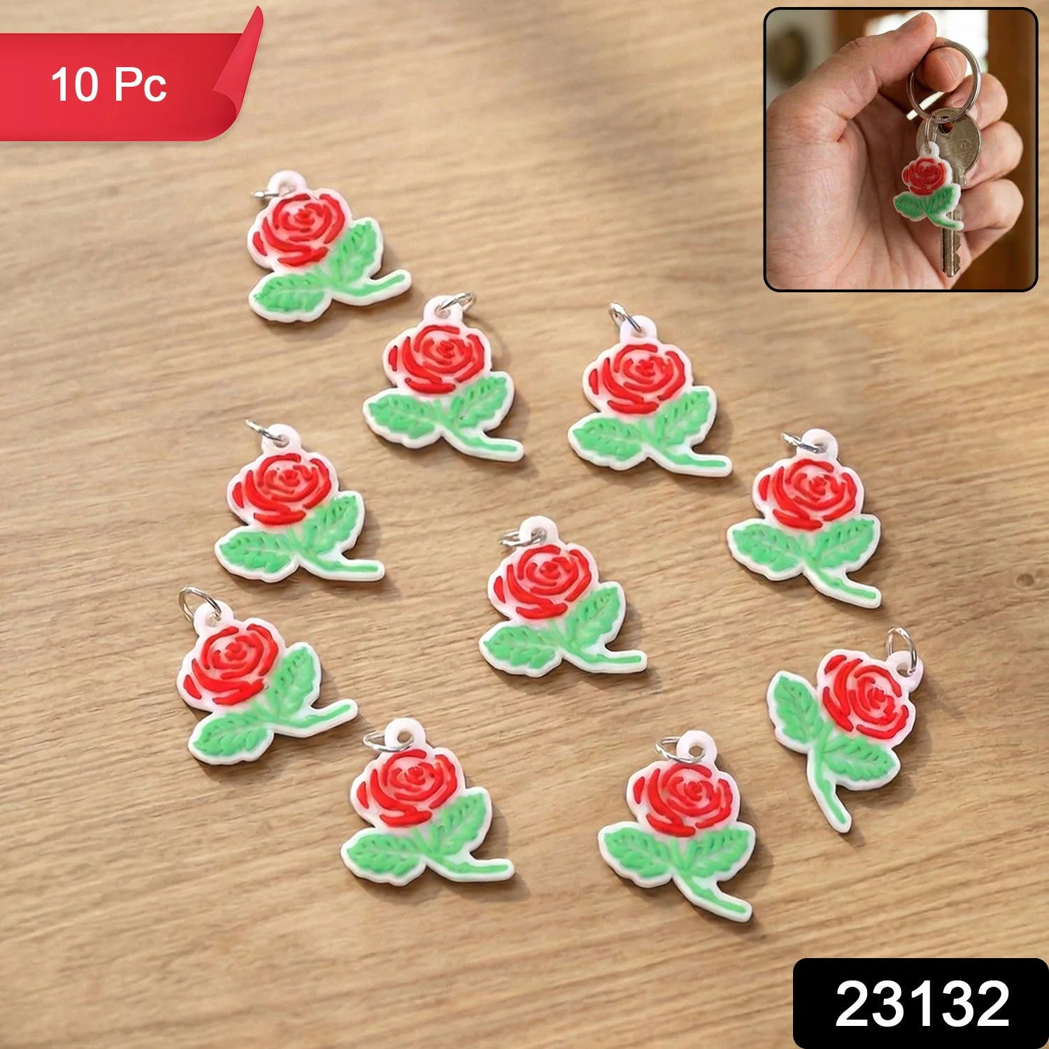 Rose Flower Design Bag Charm Keychain Set Cute Floral Key Rings for Keys, Handbags & Accessories Stylish Decorative Key Holder Set 10 Pc