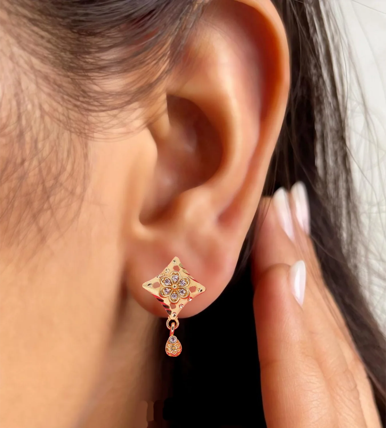 Be the first to review Rose Gold AD Flower Dangle Stud Earrings for Women and girls!