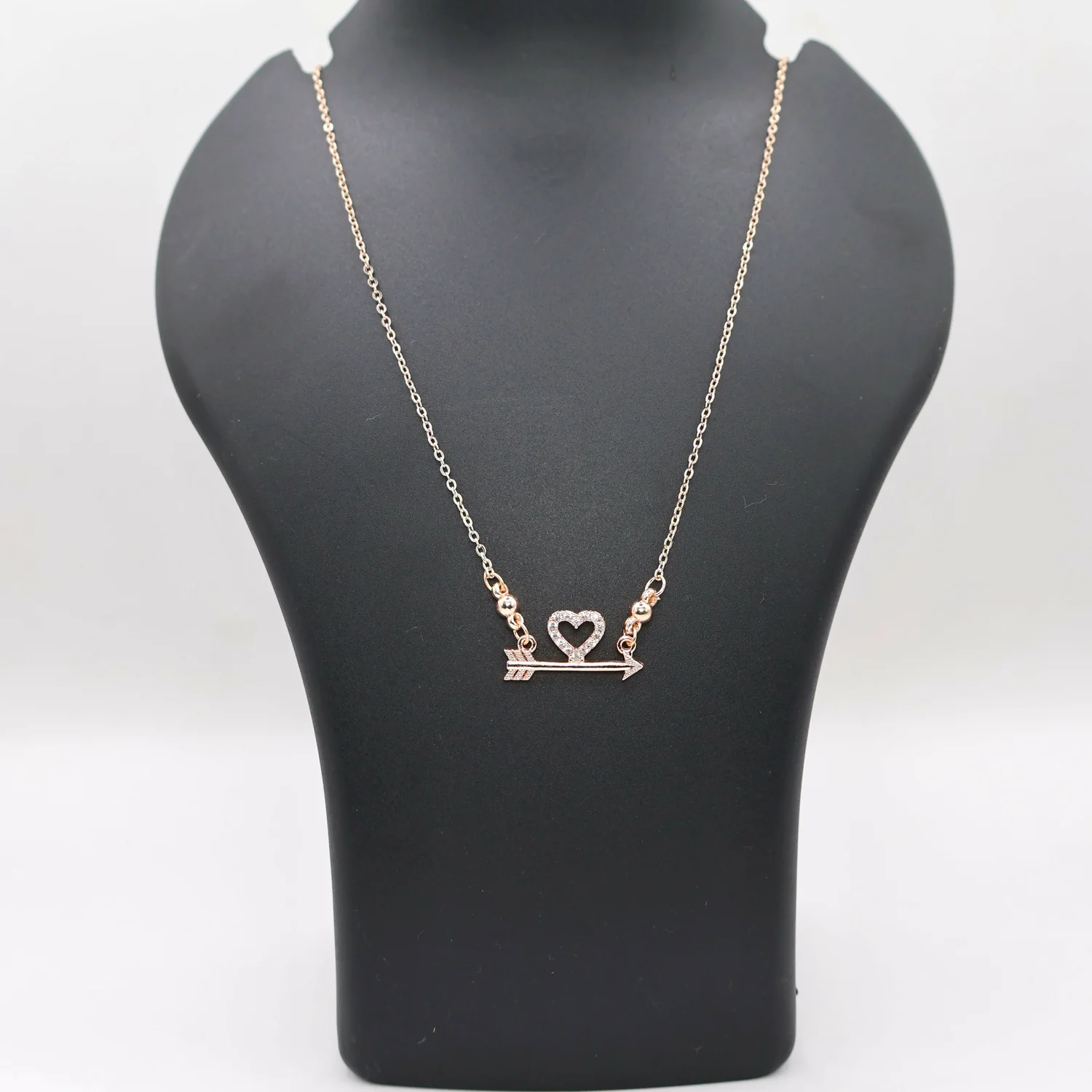 Capture the essence of romance with this beautiful and delicate Rose Gold Cupid Arrow Heart Necklace. Crafted from shimmering rose gold-tone material, this piece features a charming pendant depicting a Cupid's arrow pierced through a sweet, open heart.