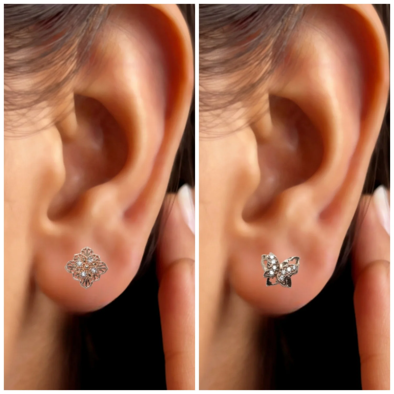 Fluttering Butterflies: The whimsical butterfly studs feature open-work wings fully covered in sparkling stones, adding a touch of playful elegance.