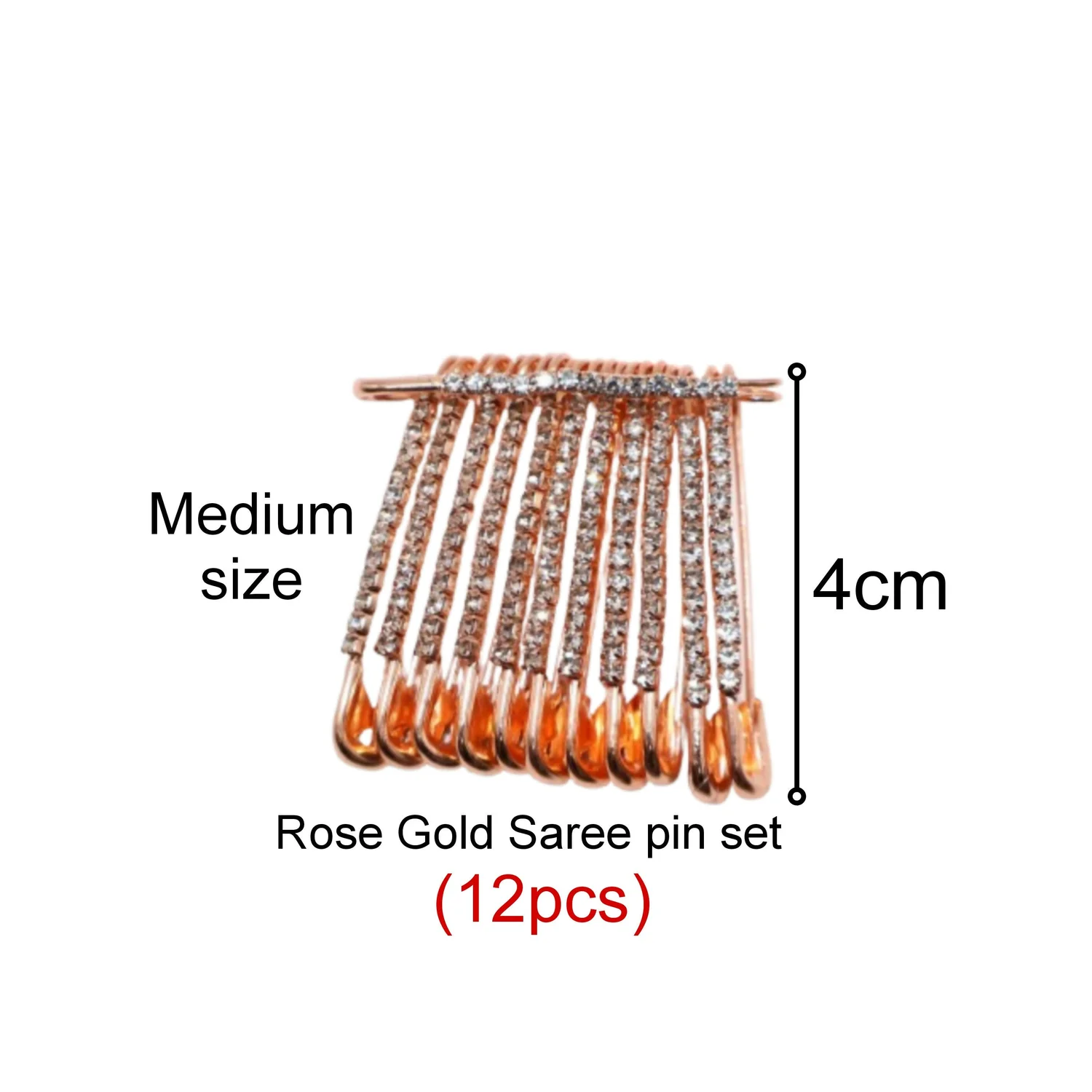 Elevate your style with this stunning, oversized Rose Gold Plated Safety Pin Brooch. Featuring a chic row of 12 smaller safety pins, each completely encrusted with glittering, iridescent AB (Aurora Borealis) rhinestones, this piece is a true statement accessory. The sparkling crystals catch the light beautifully, changing color from every angle.
