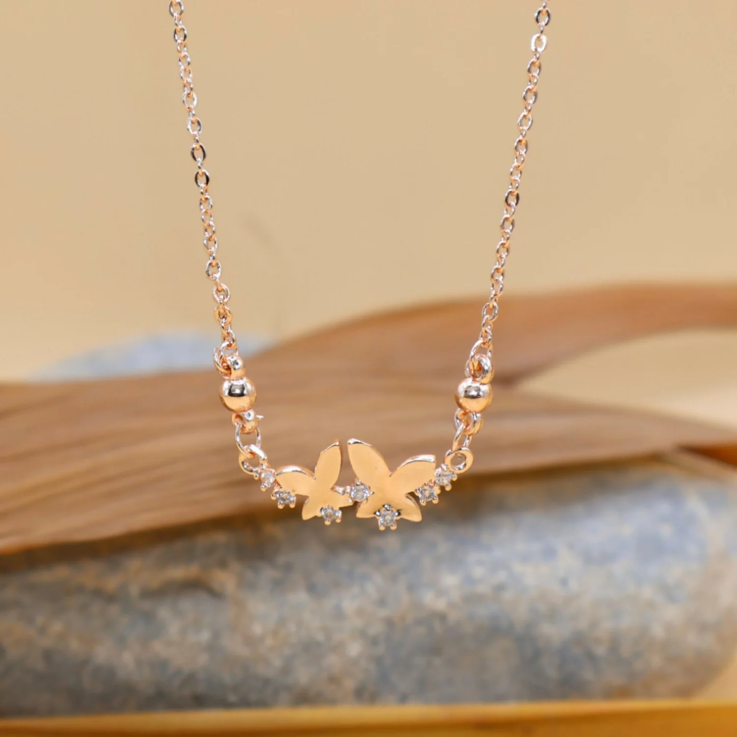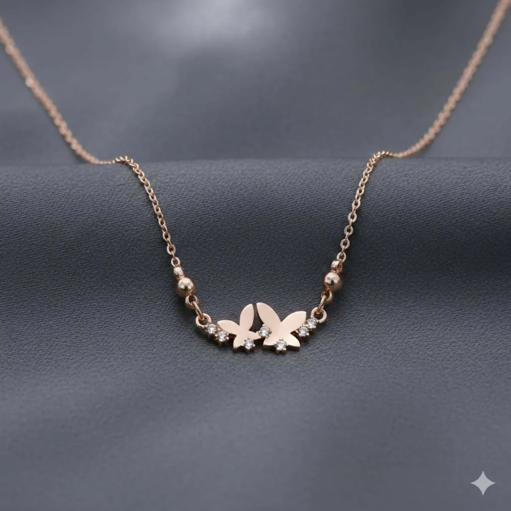 Be the first to review Rose Gold Double Butterfly Necklace | Dainty Zirconia Pendant!