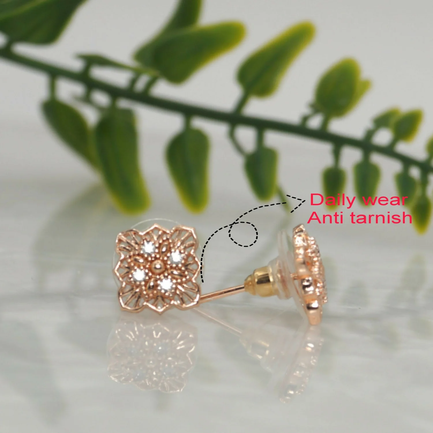 Be the first to review Rose Gold Filigree Square Stud Earrings with AD!
