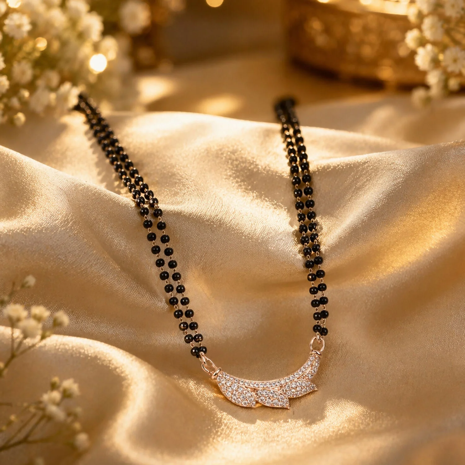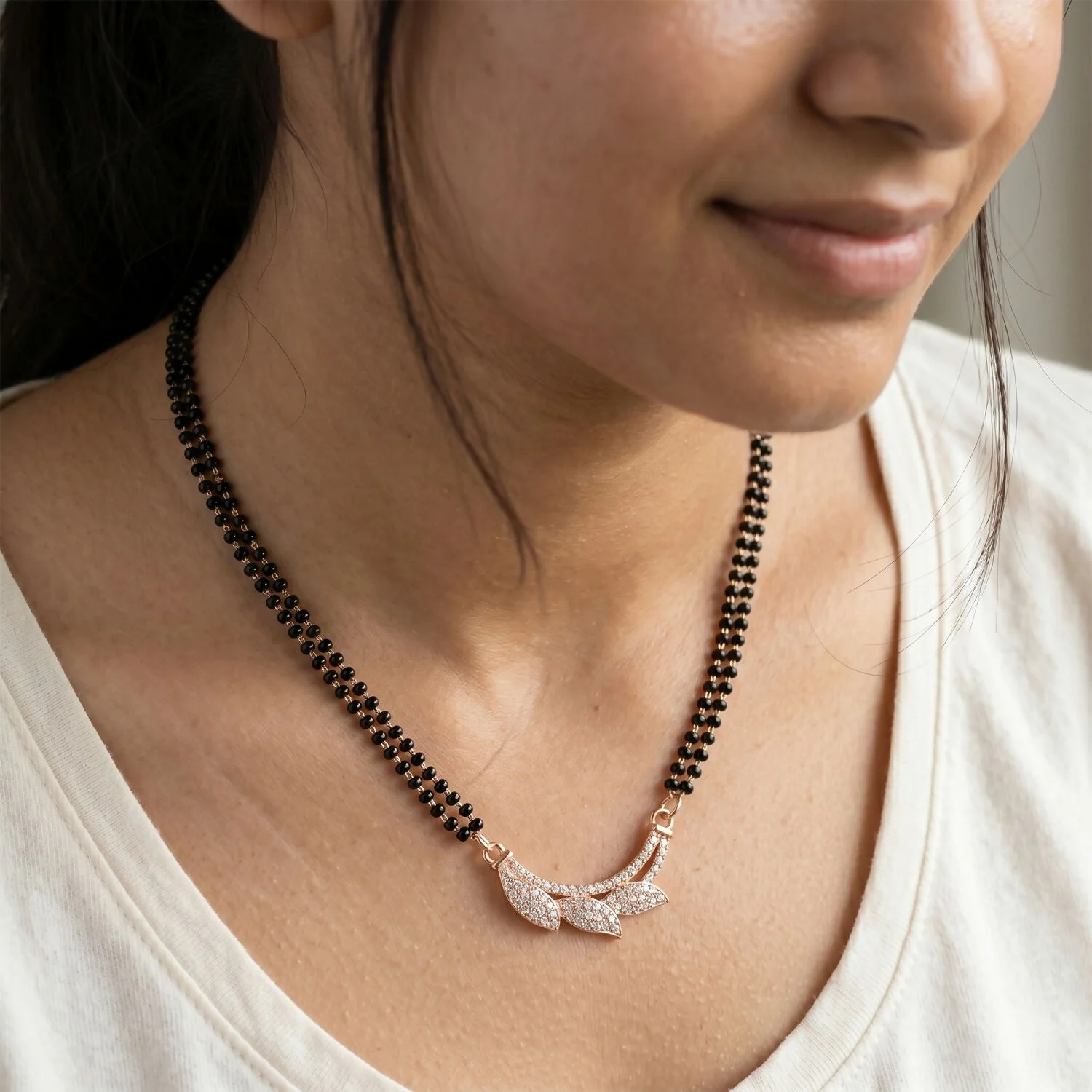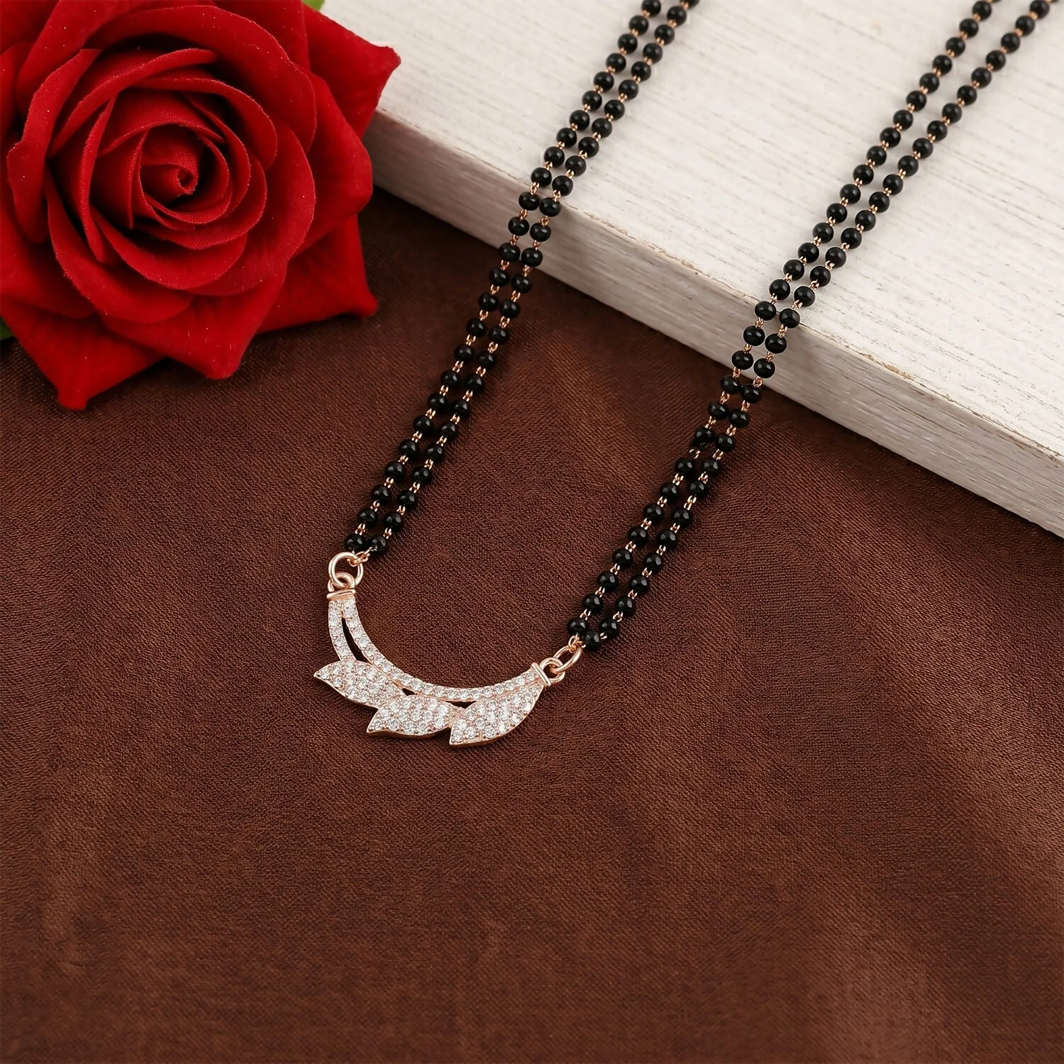Be the first to review Rose Gold Finish Full CZ Butterfly Wing Pendant Double Strand Mangalsutra!
