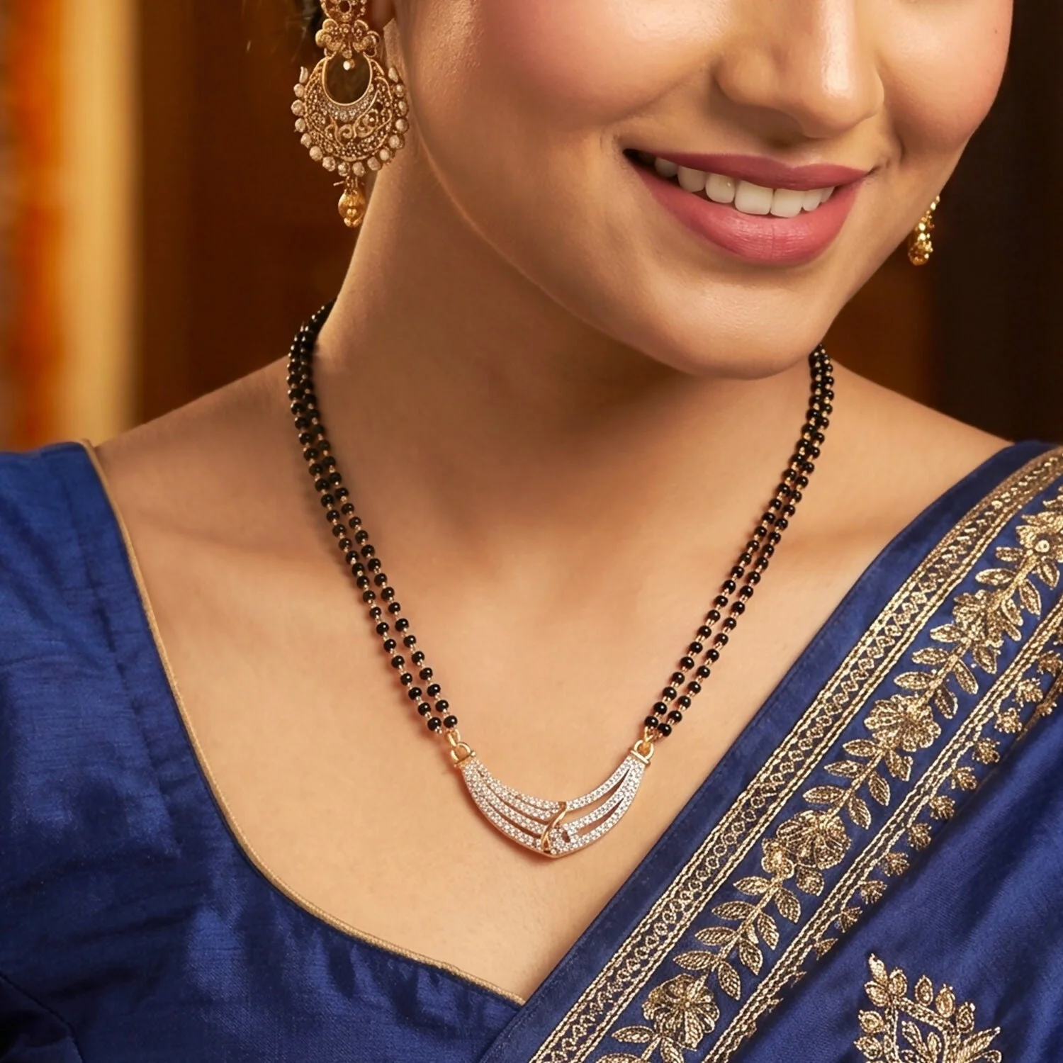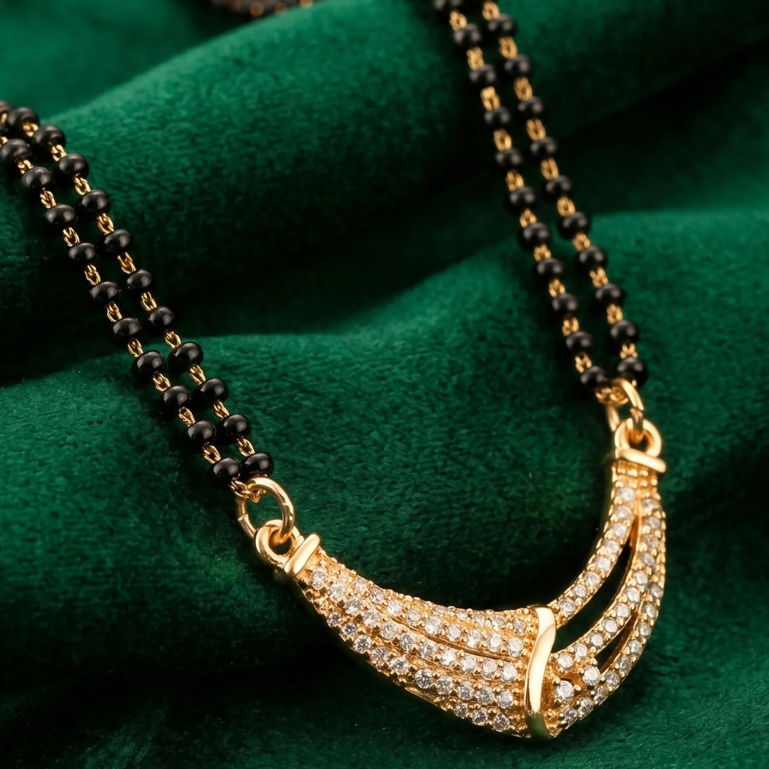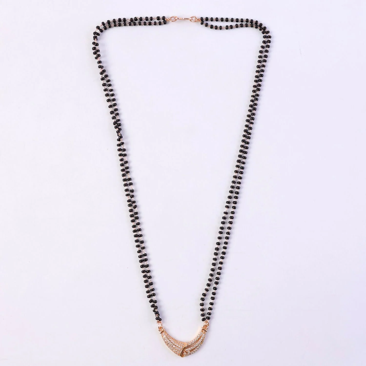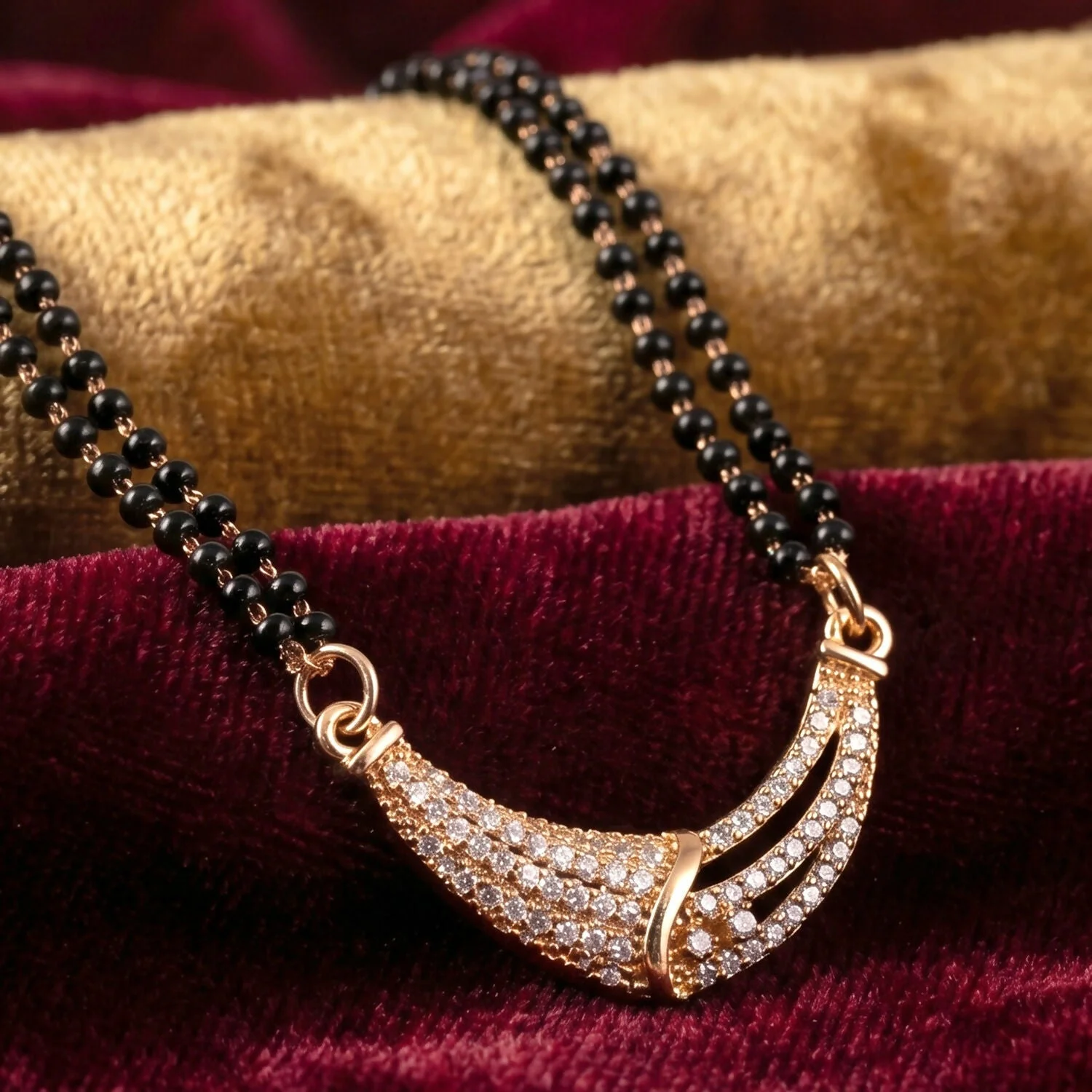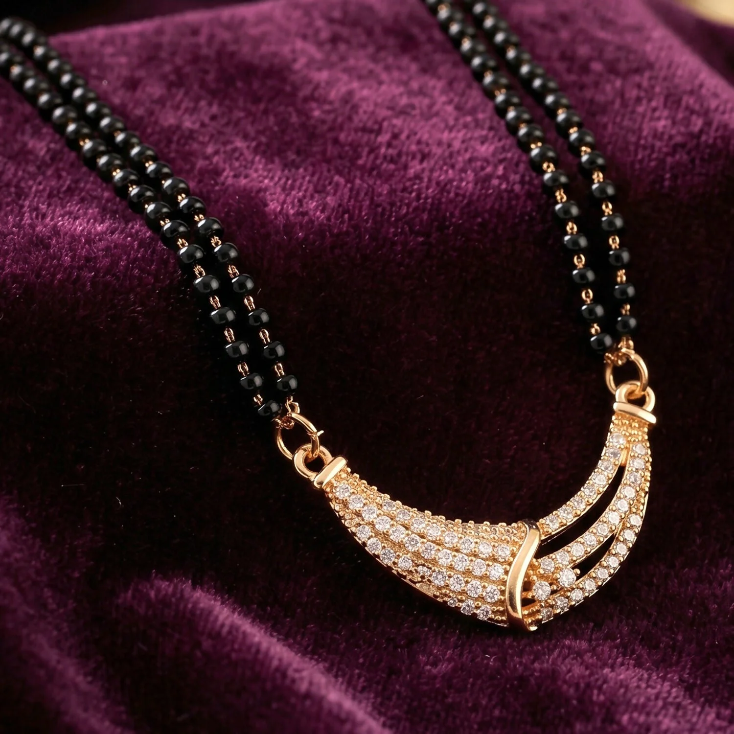 Be the first to review Rose Gold Finish Full CZ Crescent Moon Bar Double Strand Mangalsutra!