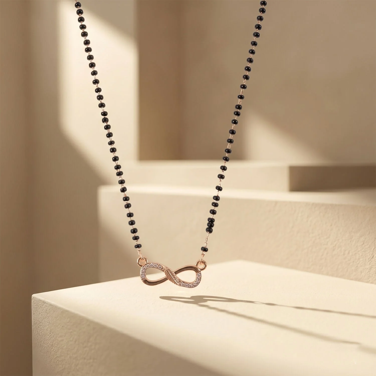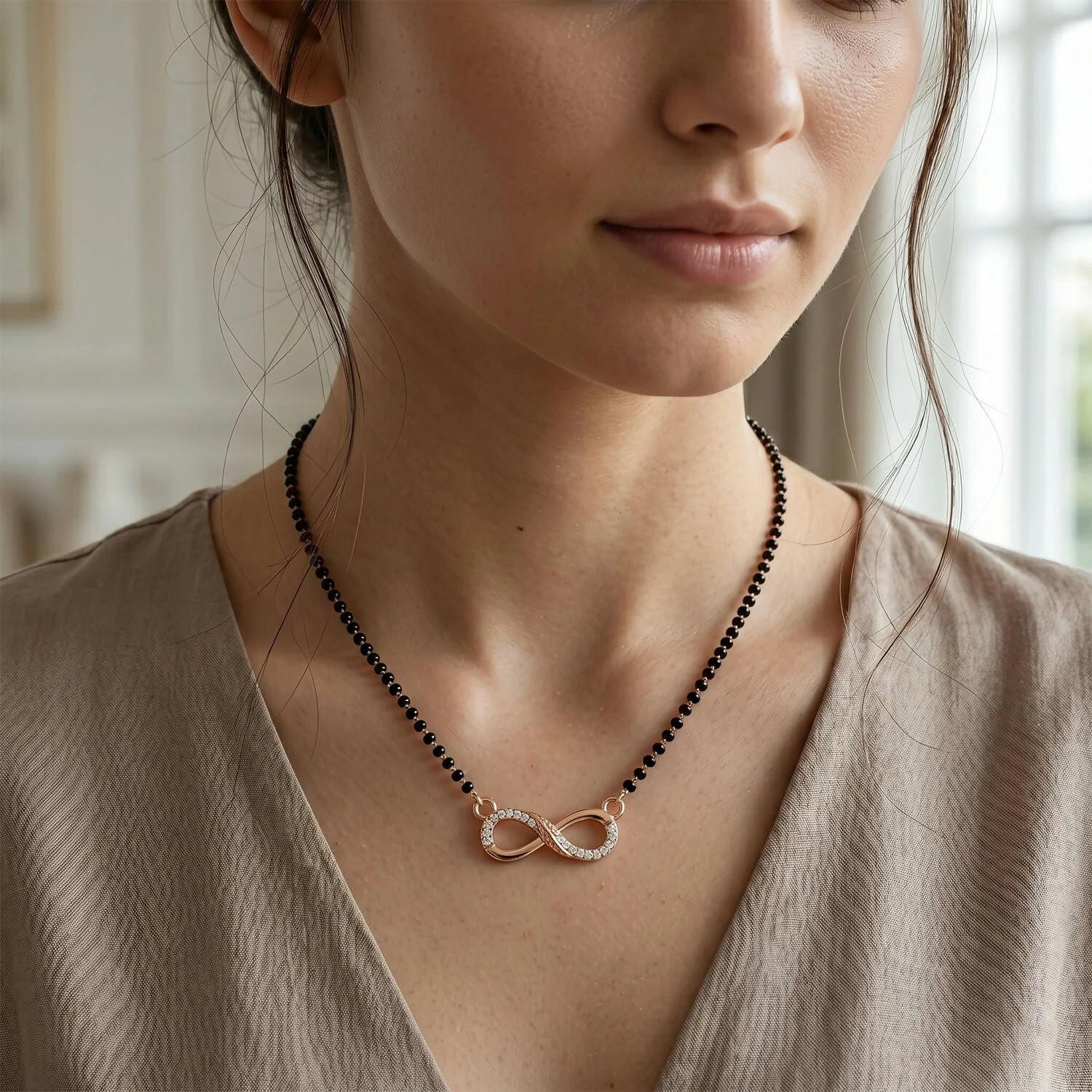 Be the first to review Rose Gold Finish Infinity Symbol CZ Pendant Single Strand Mangalsutra!