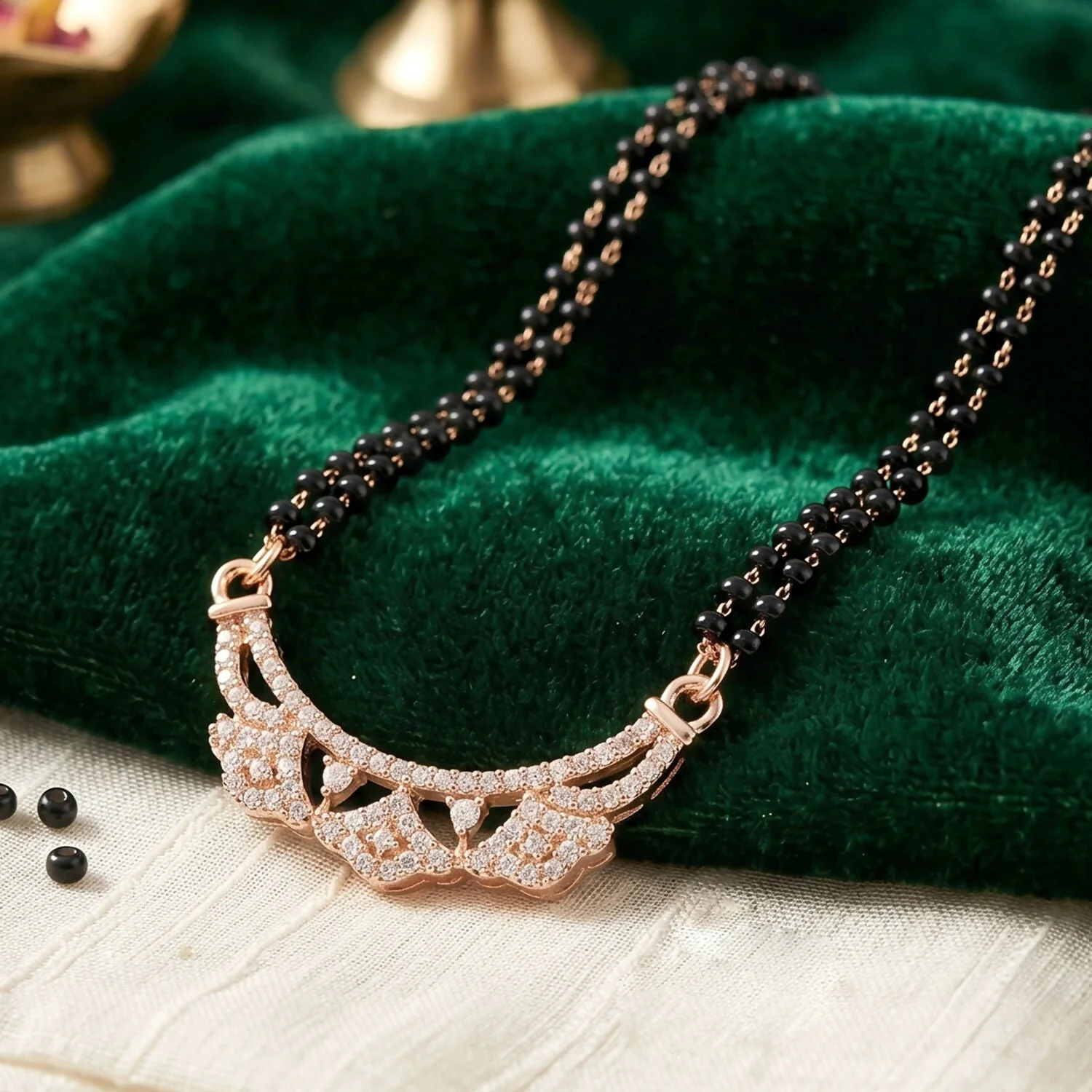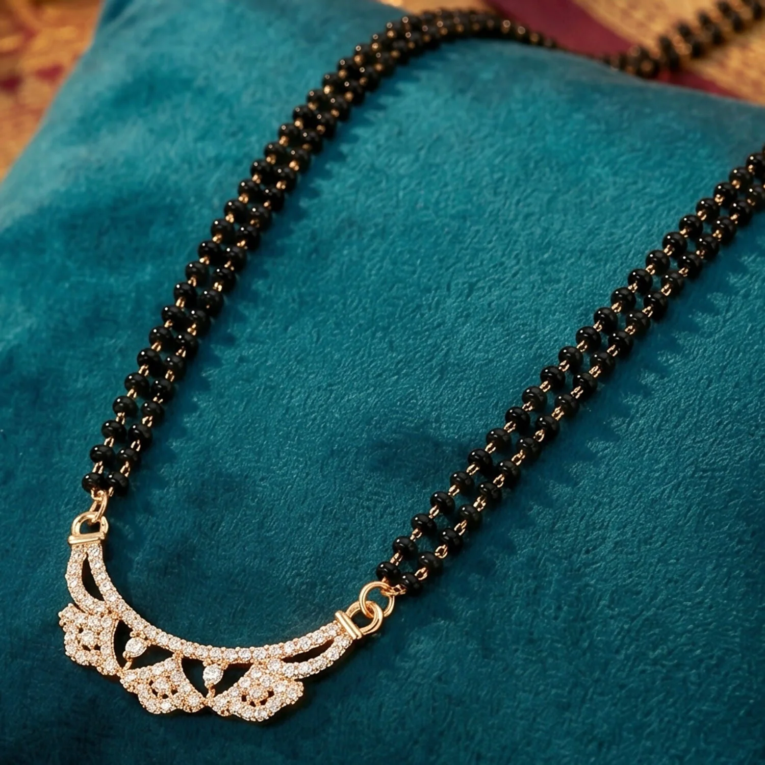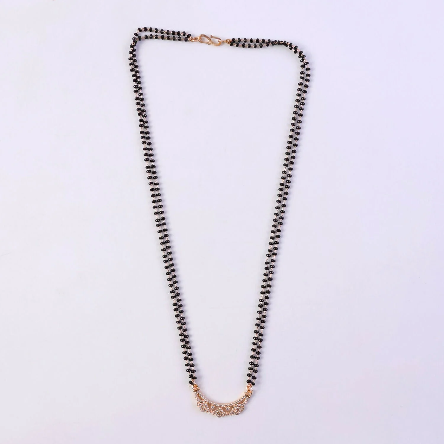 Be the first to review Rose Gold Finish Openwork Floral Petal CZ Pendant Double Strand Mangalsutra!