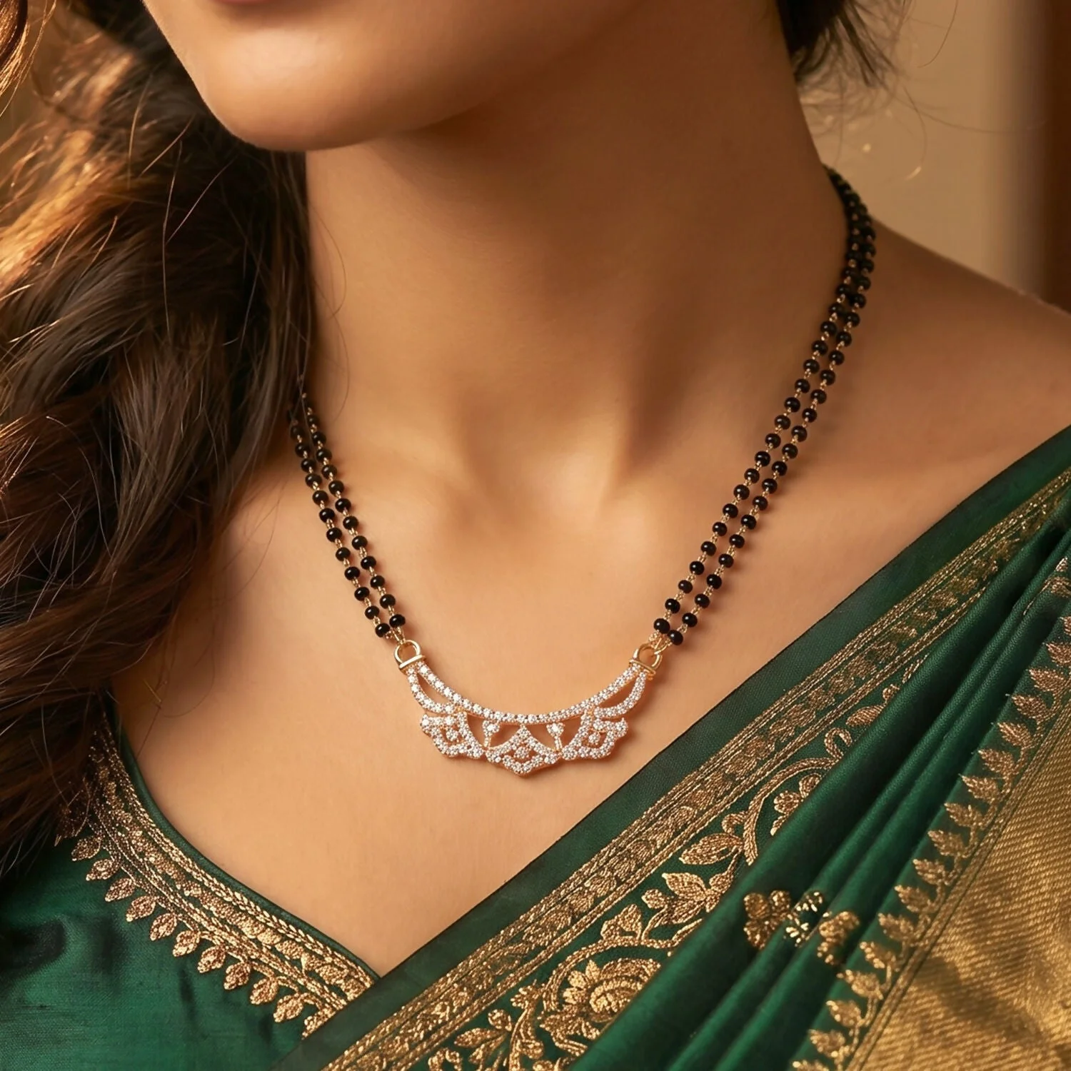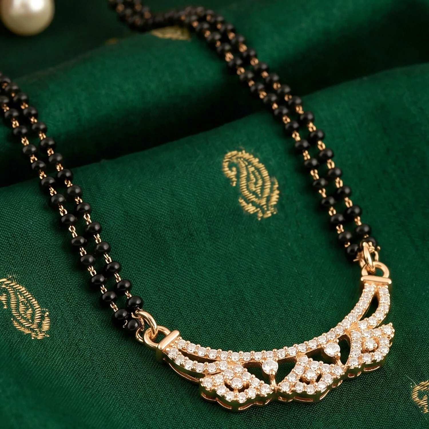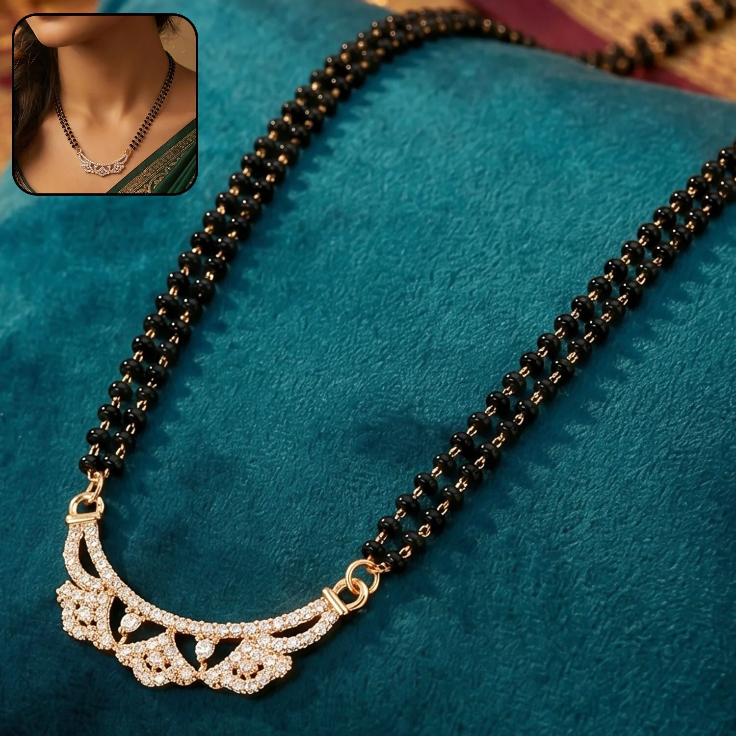Be the first to review Rose Gold Finish Openwork Floral Petal CZ Pendant Double Strand Mangalsutra!