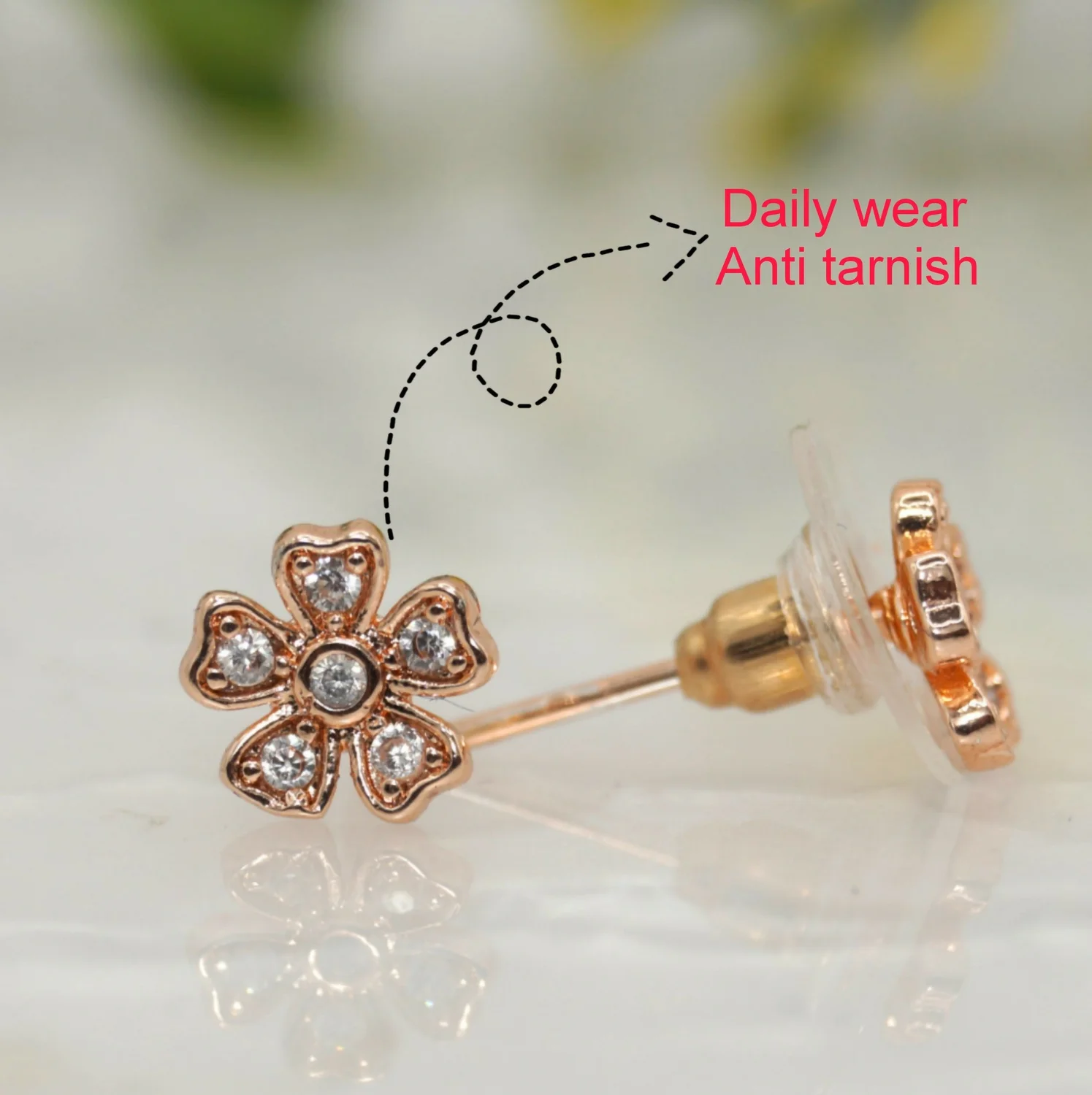 Be the first to review Rose Gold Flower Stud Earrings with AD for women and girls!