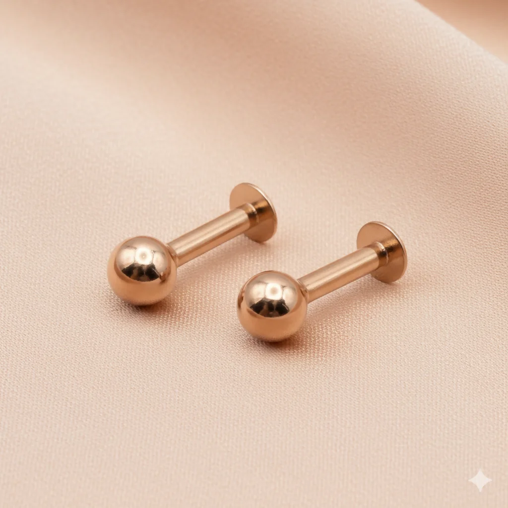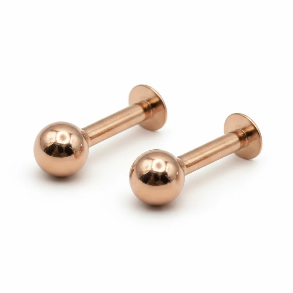 Elevate your jewelry collection with these sleek and versatile Rose Gold Labret Studs. Designed for both comfort and style, these studs feature a high-polish finish and a secure flat-back design, making them perfect for all-day wear and sleeping without irritation.