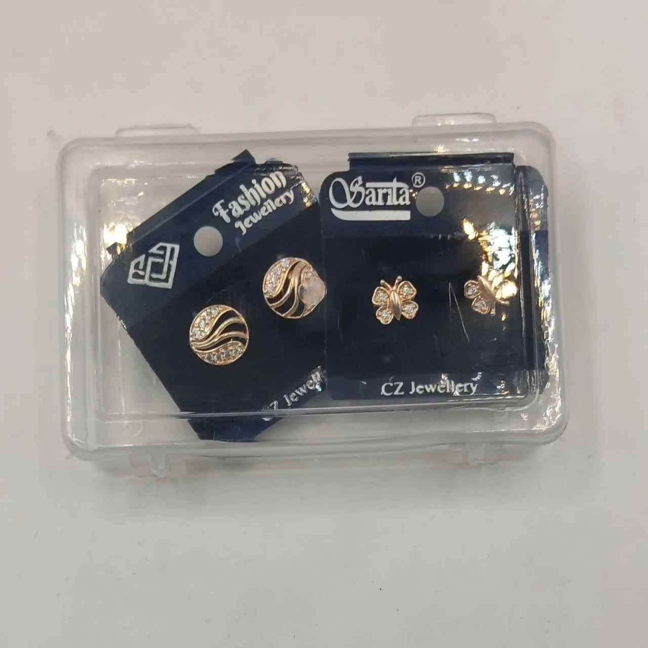 Be the first to review Rose Gold Plated AD Stud Earrings Set (Butterfly & Round) for women and girls Combo Pack of 2!