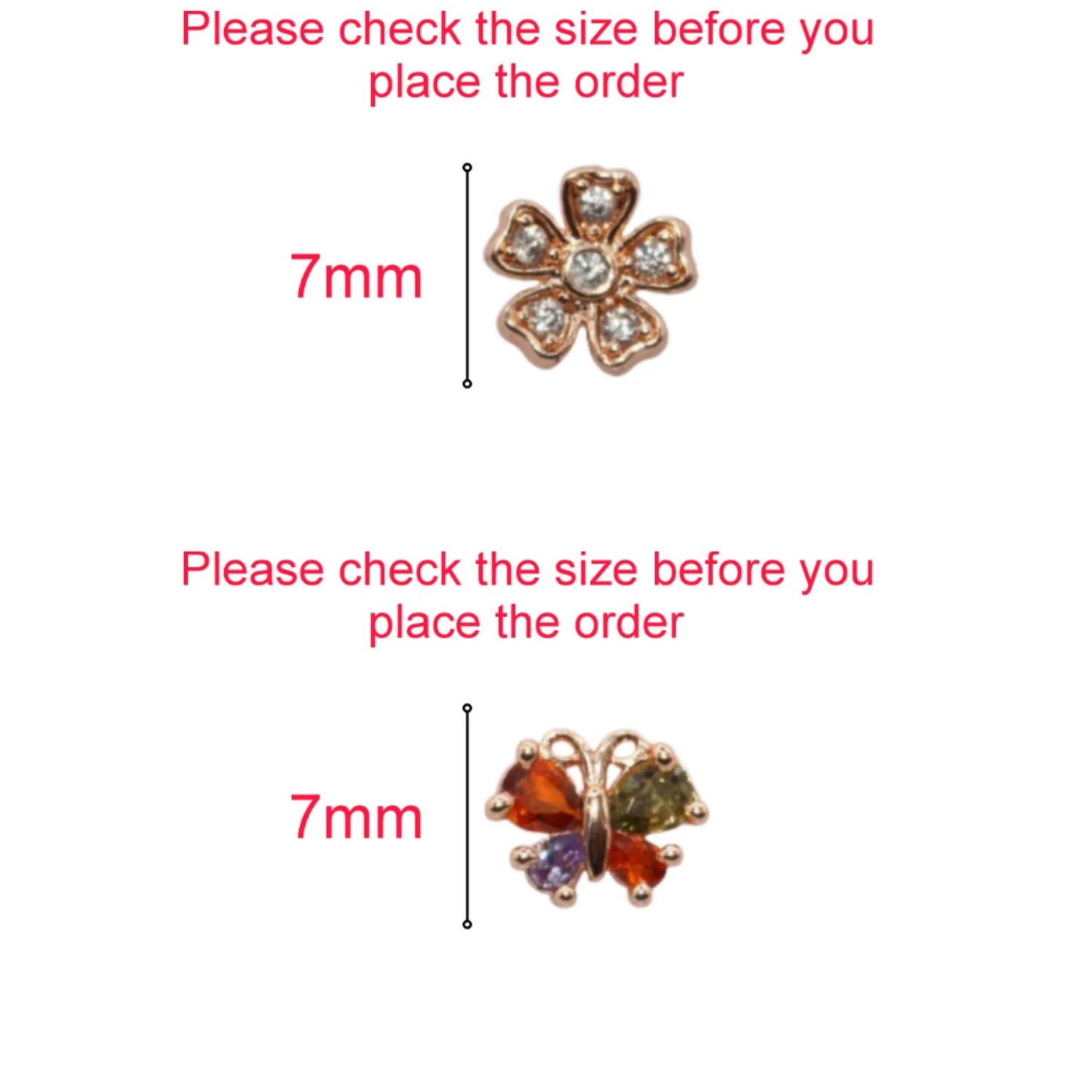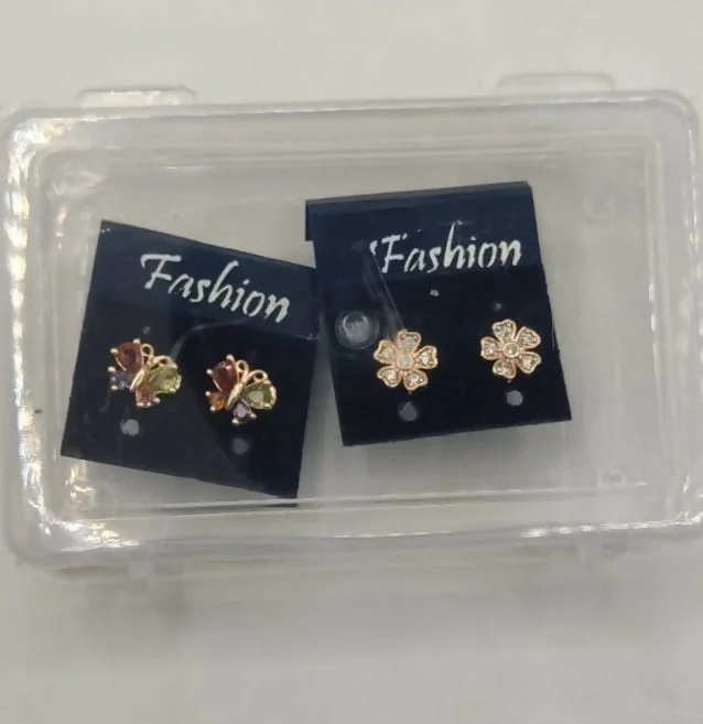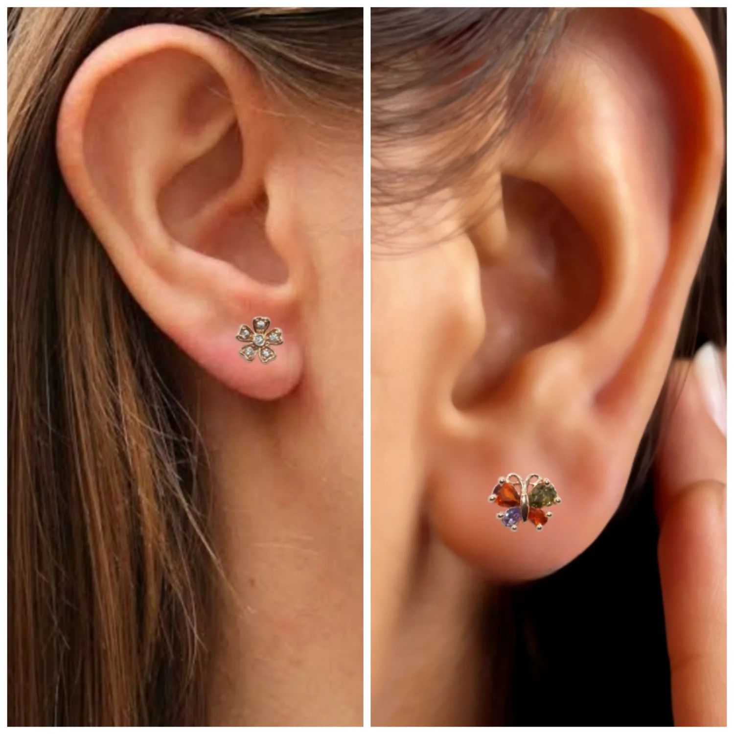 Design: Two unique pairs—Butterfly (Multicolor CZ) and Flower (Clear CZ)