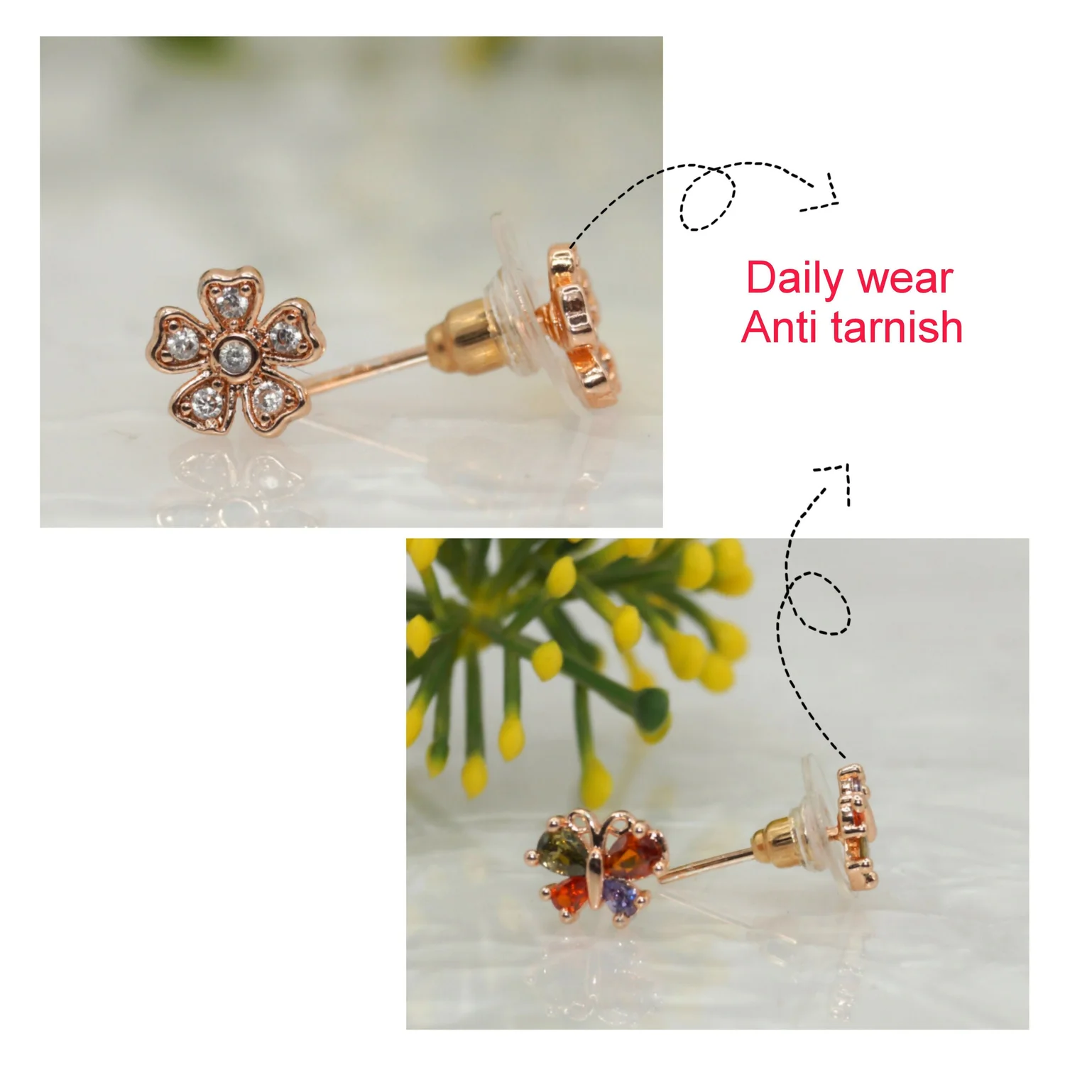 Be the first to review Rose Gold Plated Butterfly & Flower Stud Earrings Set for women and girls Combo Pack of 2!