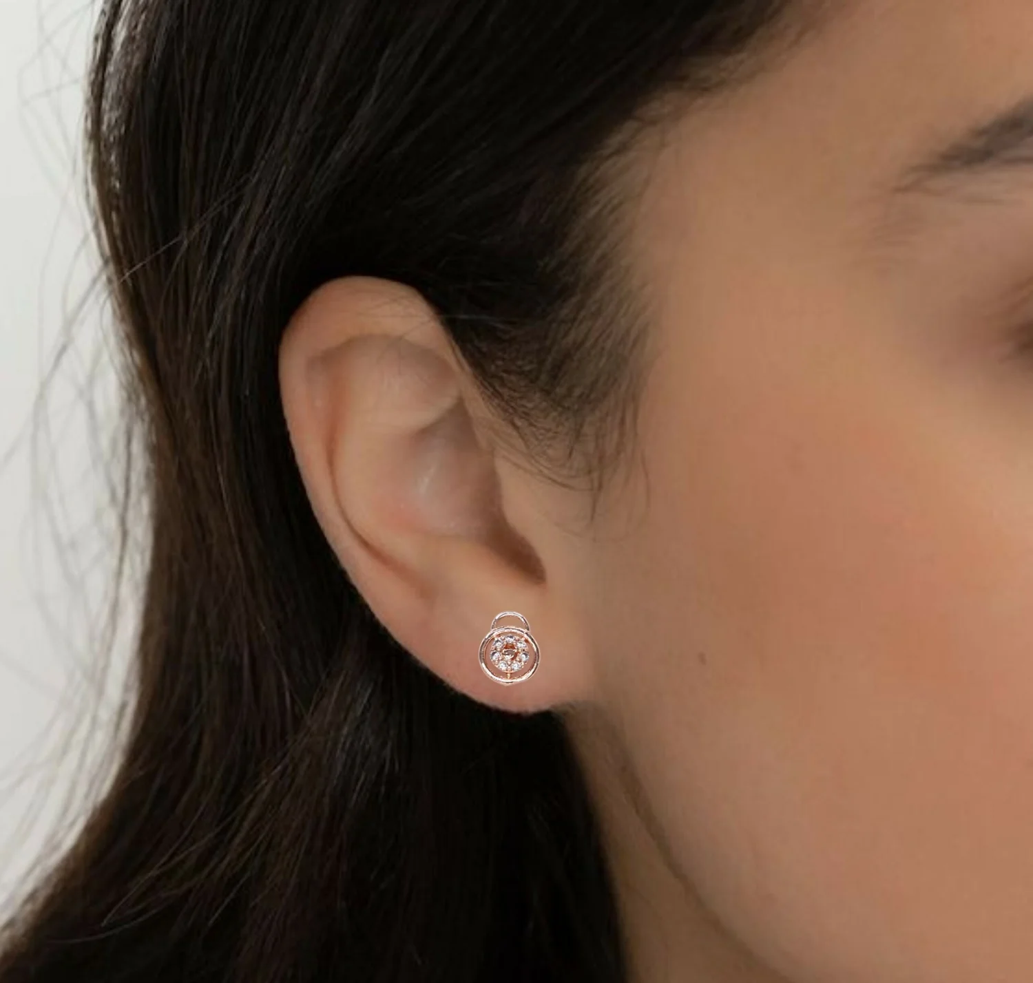 These exquisite stud earrings combine timeless style with everyday durability, making them the perfect addition to your jewelry collection. Featuring a delicate circular design with a sparkling cluster of clear Cubic Zirconia (CZ) stones, they offer a brilliant look without the high cost.