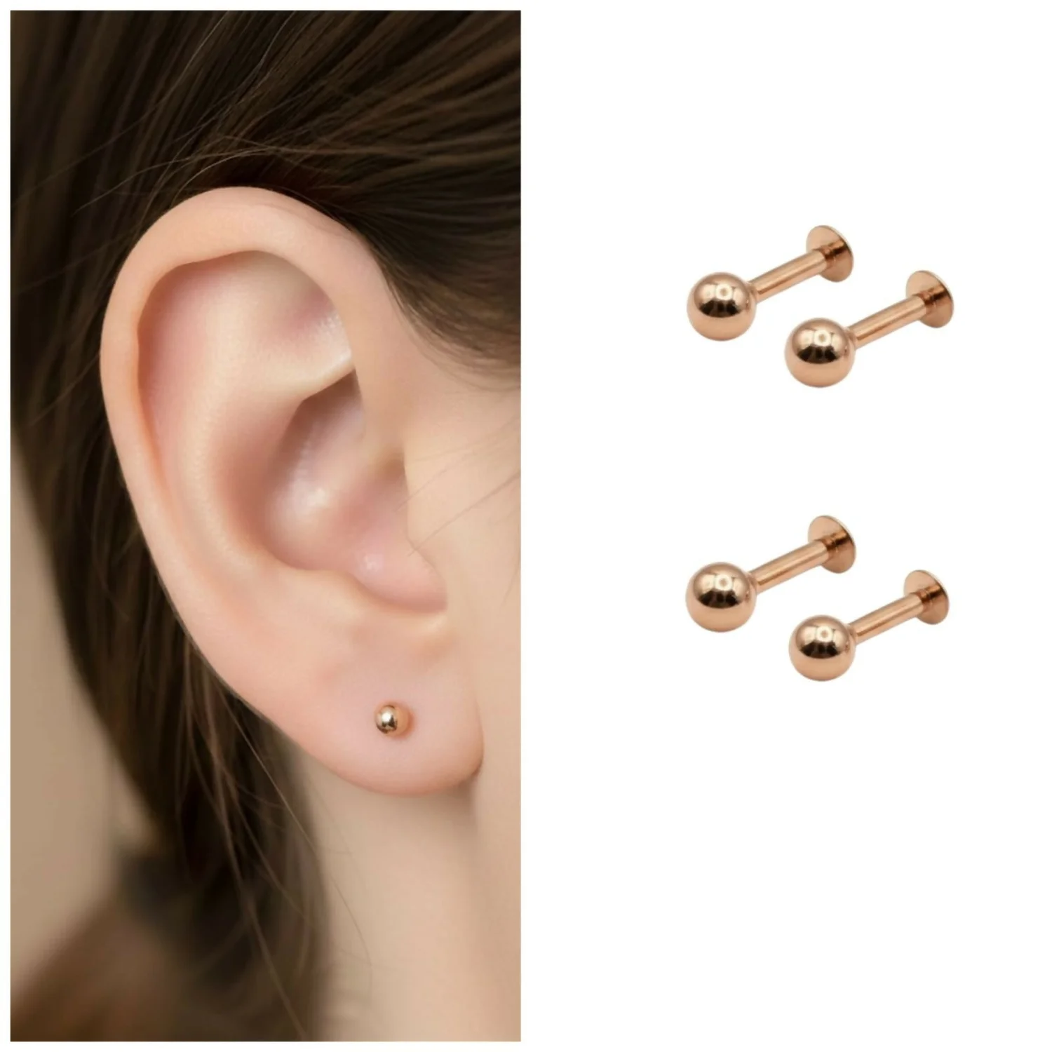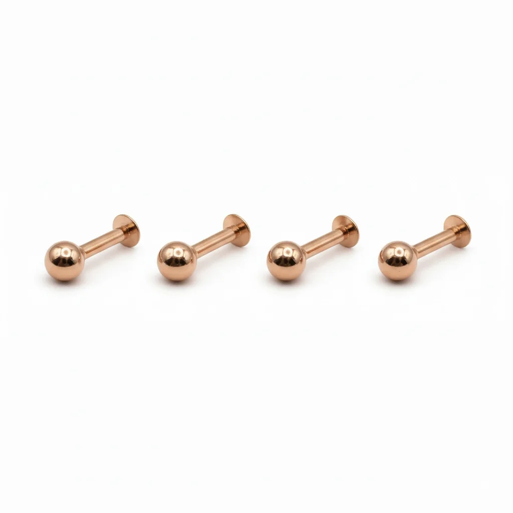 Elevate your everyday style with ultimate comfort. These Rose Gold Flat Back Labret Studs are designed for those who value both aesthetics and ease. Featuring a sleek, high-polish finish, these studs are perfect for a variety of piercings, including the lobe, tragus, helix, and cartilage.