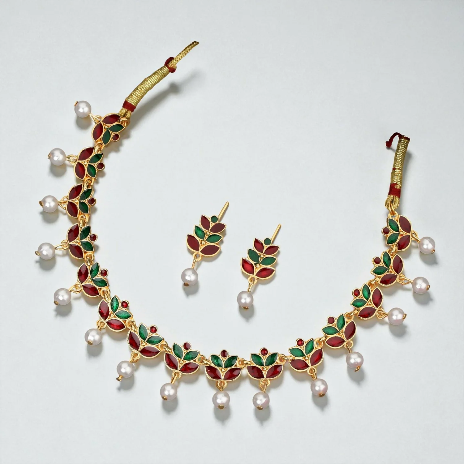 Be the first to review Rose Gold-Tone Bright Red & Green Enamel Lotus Choker Set!