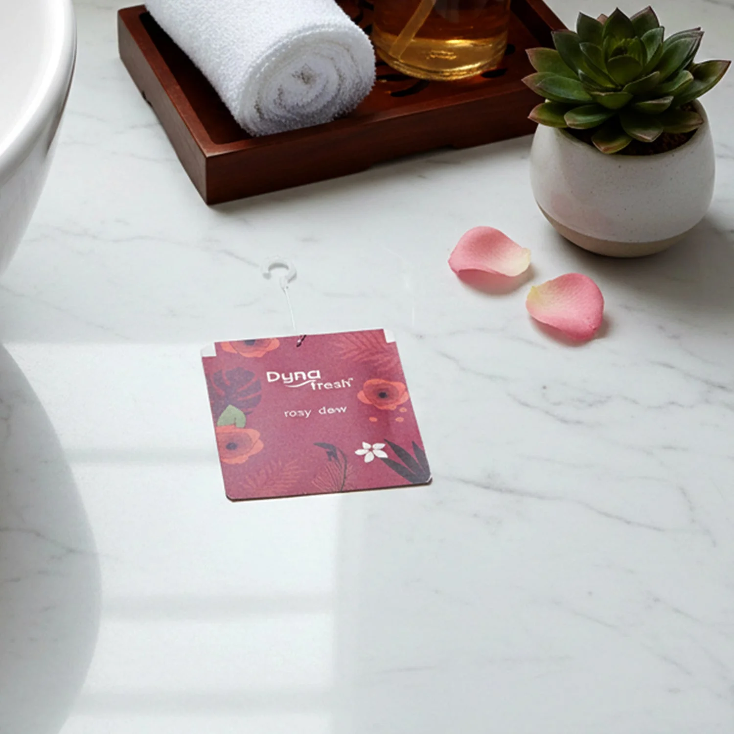 Enhance your space with the soothing aroma of Rosy Dew Hanging Air Freshener. Designed to provide a pleasant floral fragrance, this compact paper freshener helps reduce unpleasant odors and maintain a refreshing atmosphere in enclosed areas. Its lightweight hanging design makes it easy to place in bathrooms, wardrobes, cars, and other small spaces without taking up surface area. The rosy dew fragrance delivers a gentle and calming scent that keeps your surroundings feeling clean and inviting. Ideal for daily use, it offers a simple and effective way to maintain freshness.