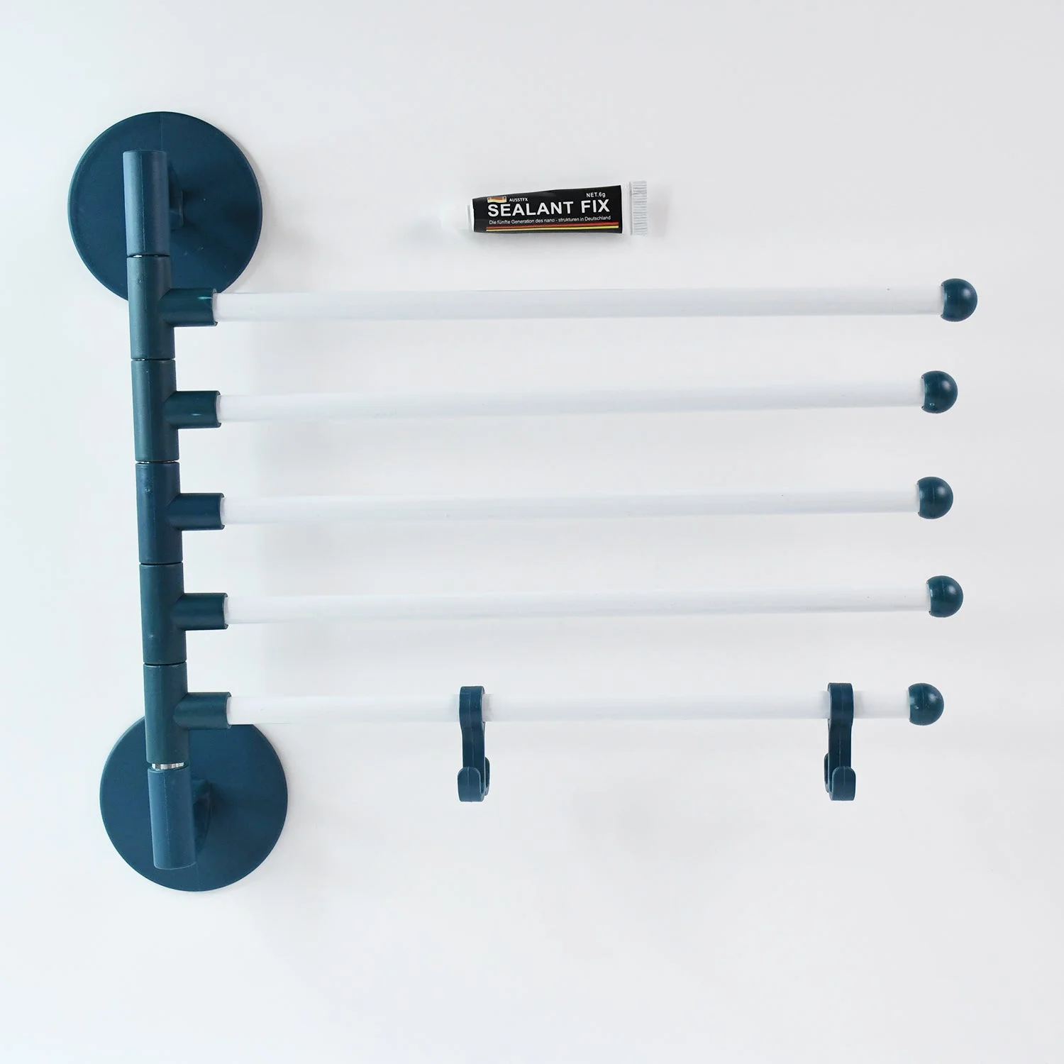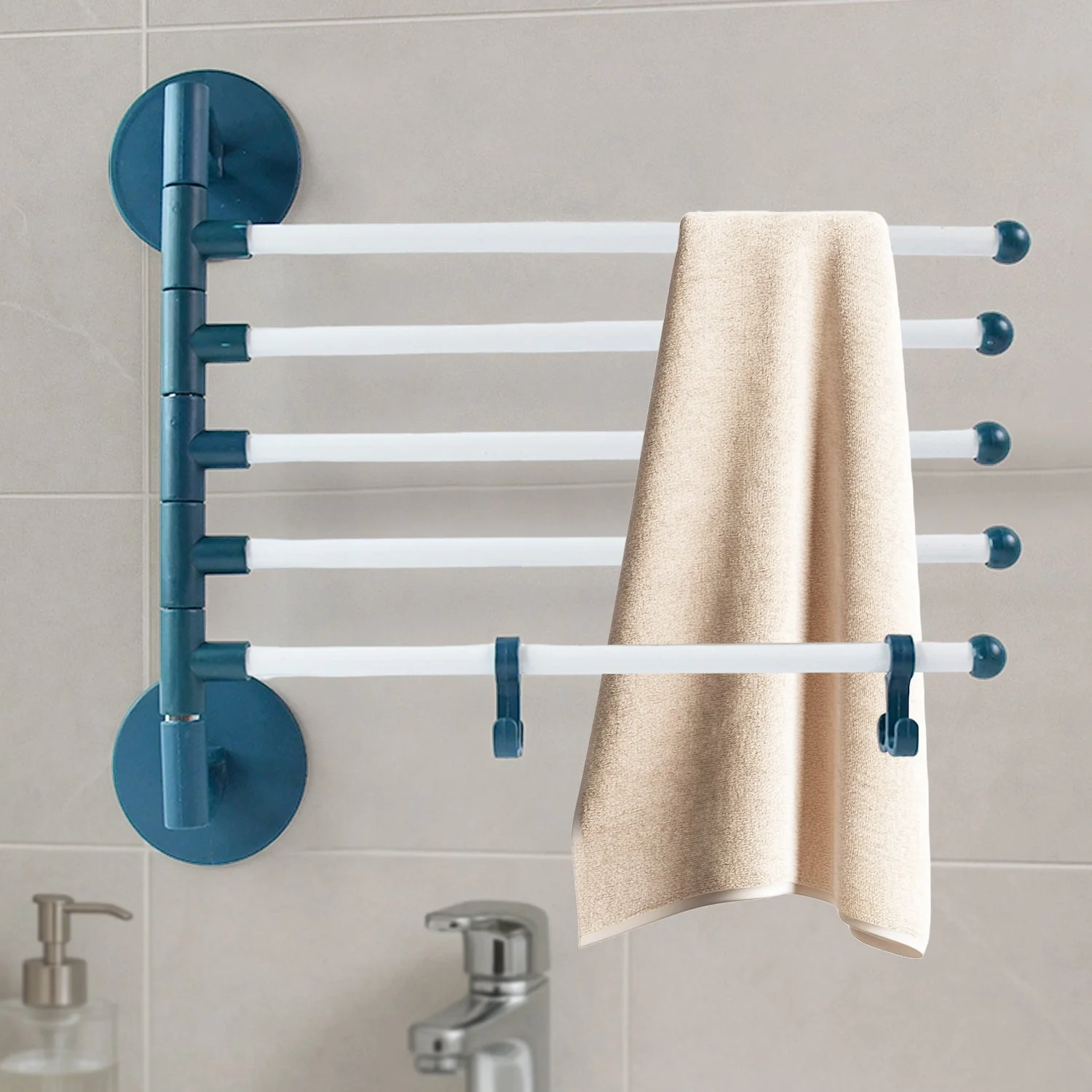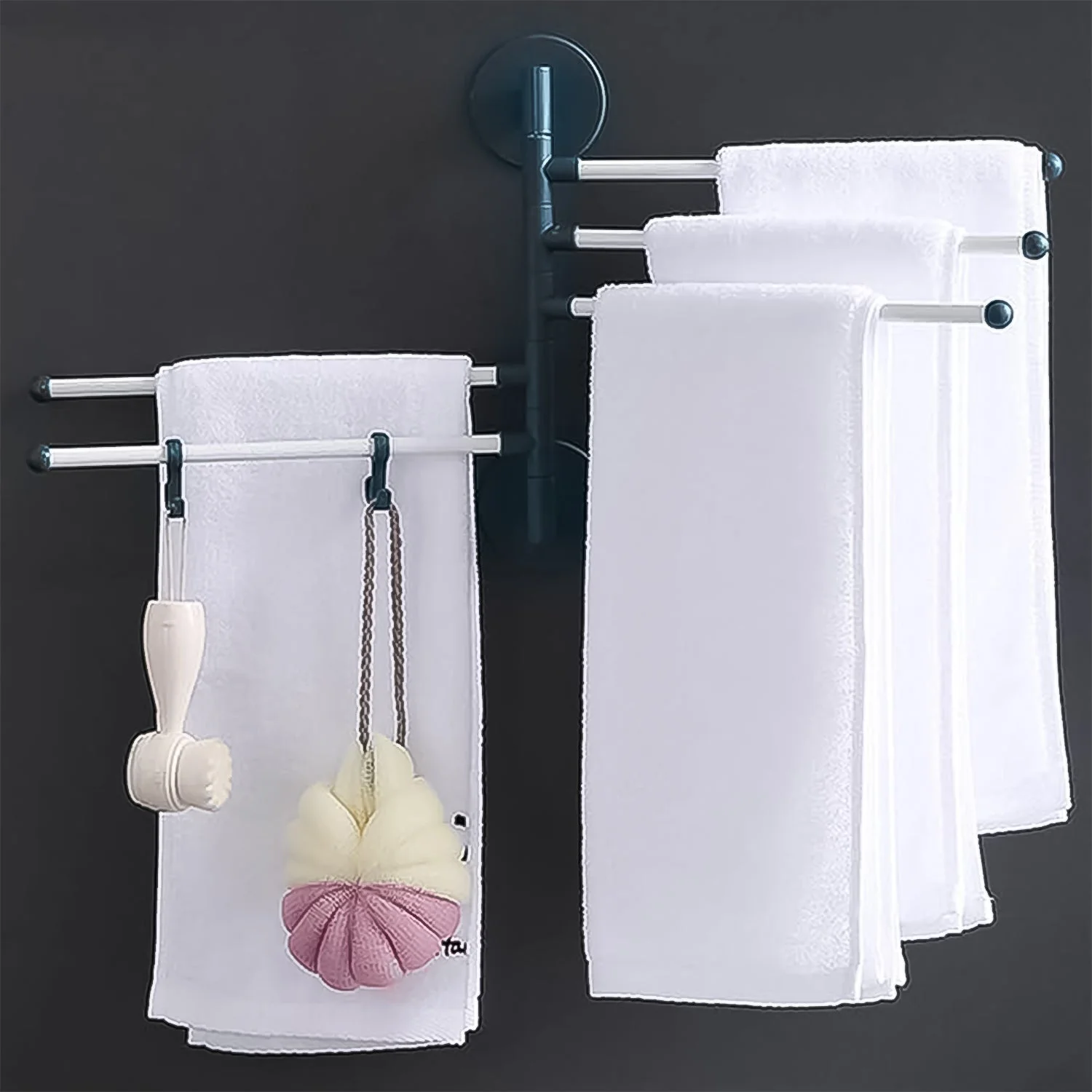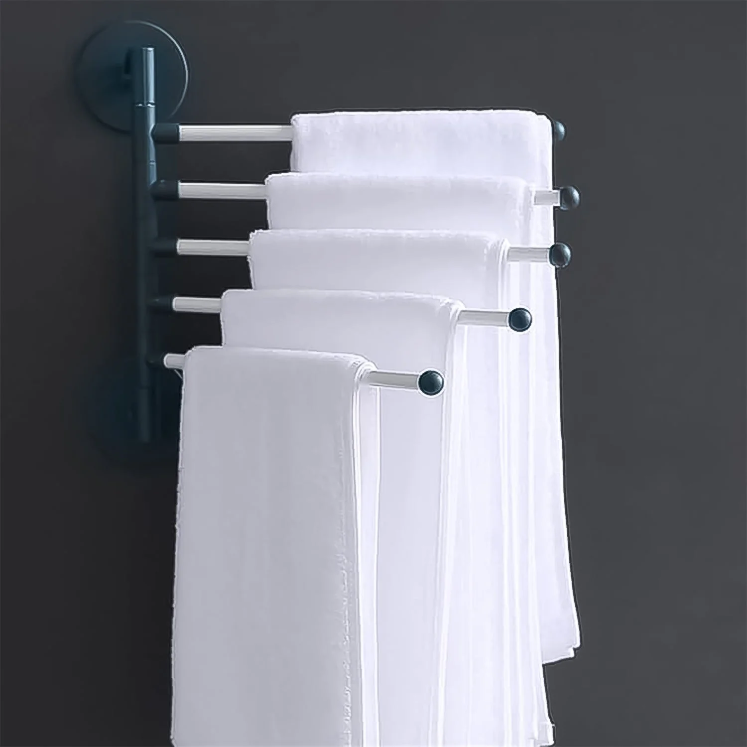 Rotating 5-Bar Wall Mounted Swivel Towel Rack with Hooks – Space Saving, Foldable & Multipurpose Organizer for Bathroom, Kitchen, Balcony, and Laundry Room
