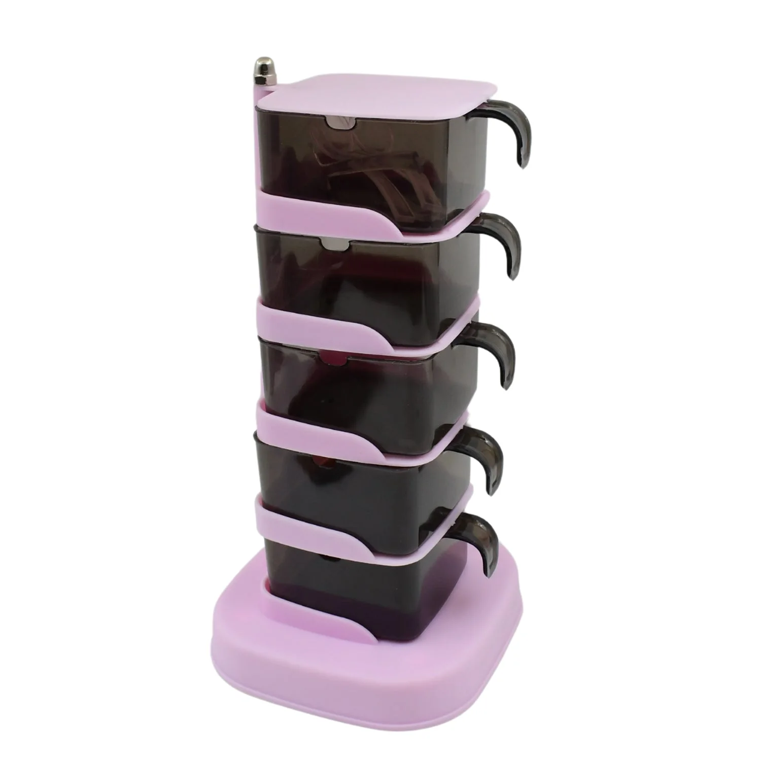 Rotating Spice Jars Vertical Rotatable Seasoning Box Kitchen Tools Seasoning Rack Rotatable Spice Pots Condiment Pots for Pantry Dining Room, 5 Section / Tier With 5 Spoon (1 Set)