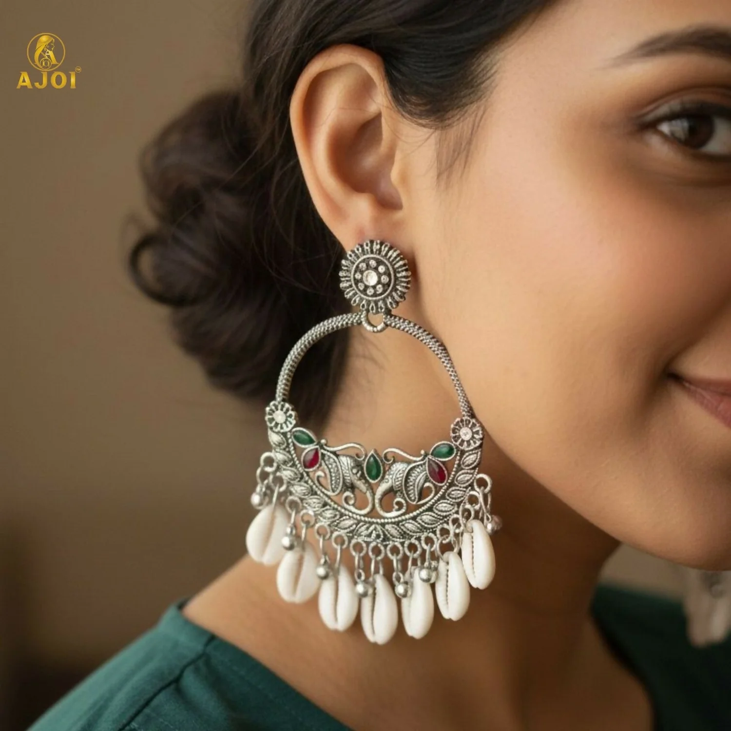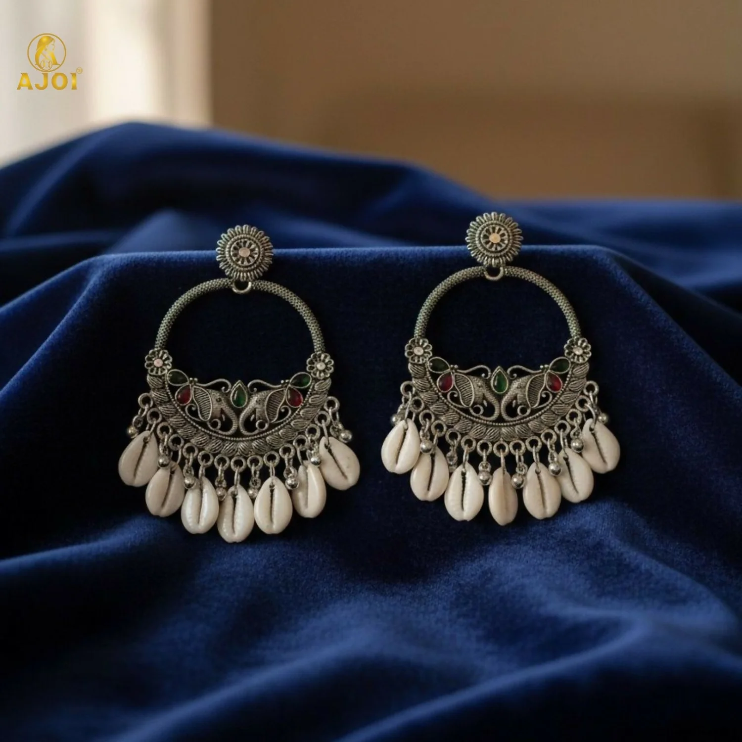 Delicately suspended natural shell drops add movement and charm, creating a mesmerizing blend of ethnic sophistication and royal allure. Lightweight yet impactful, these earrings are perfect for weddings, festive celebrations, cultural events, and elegant evening wear.