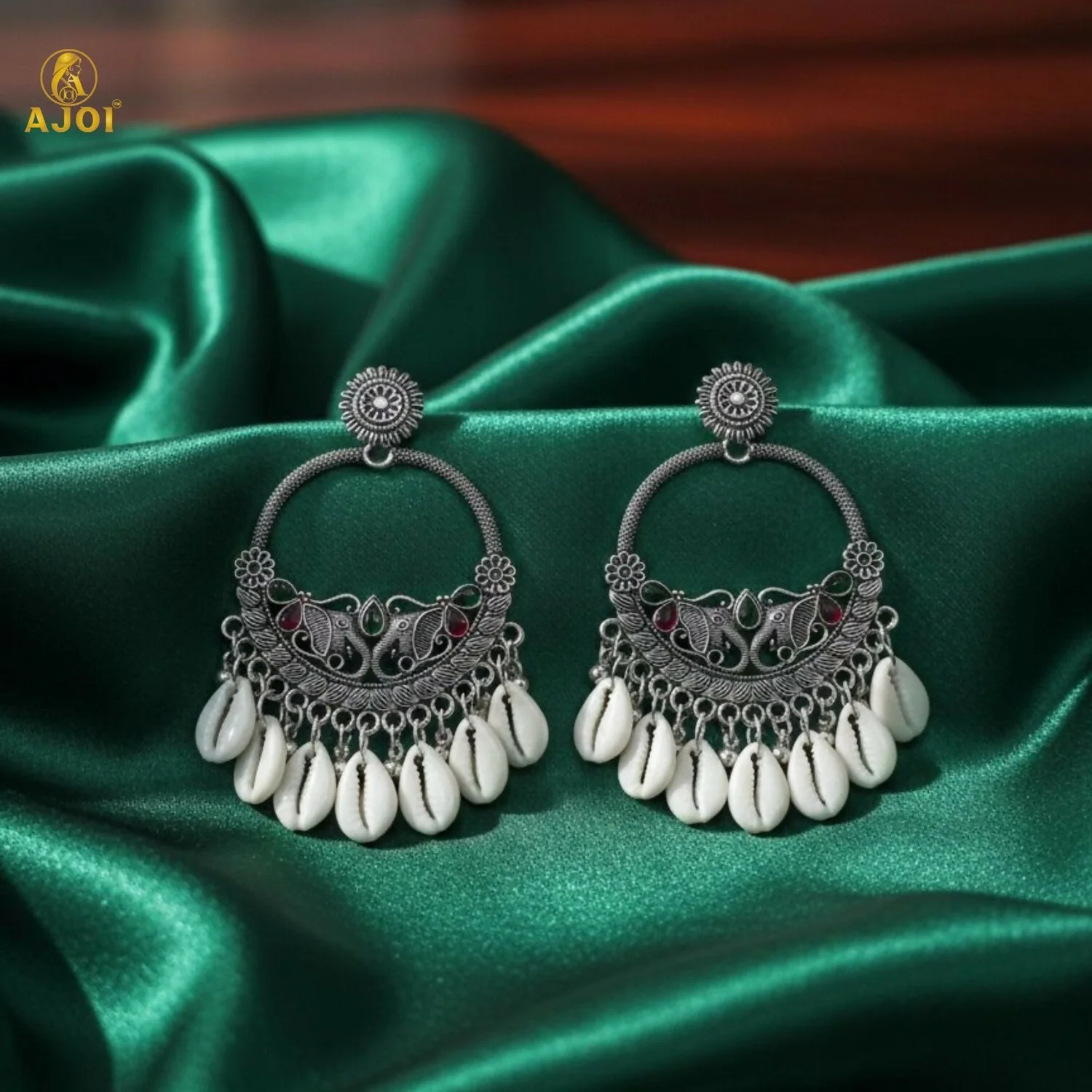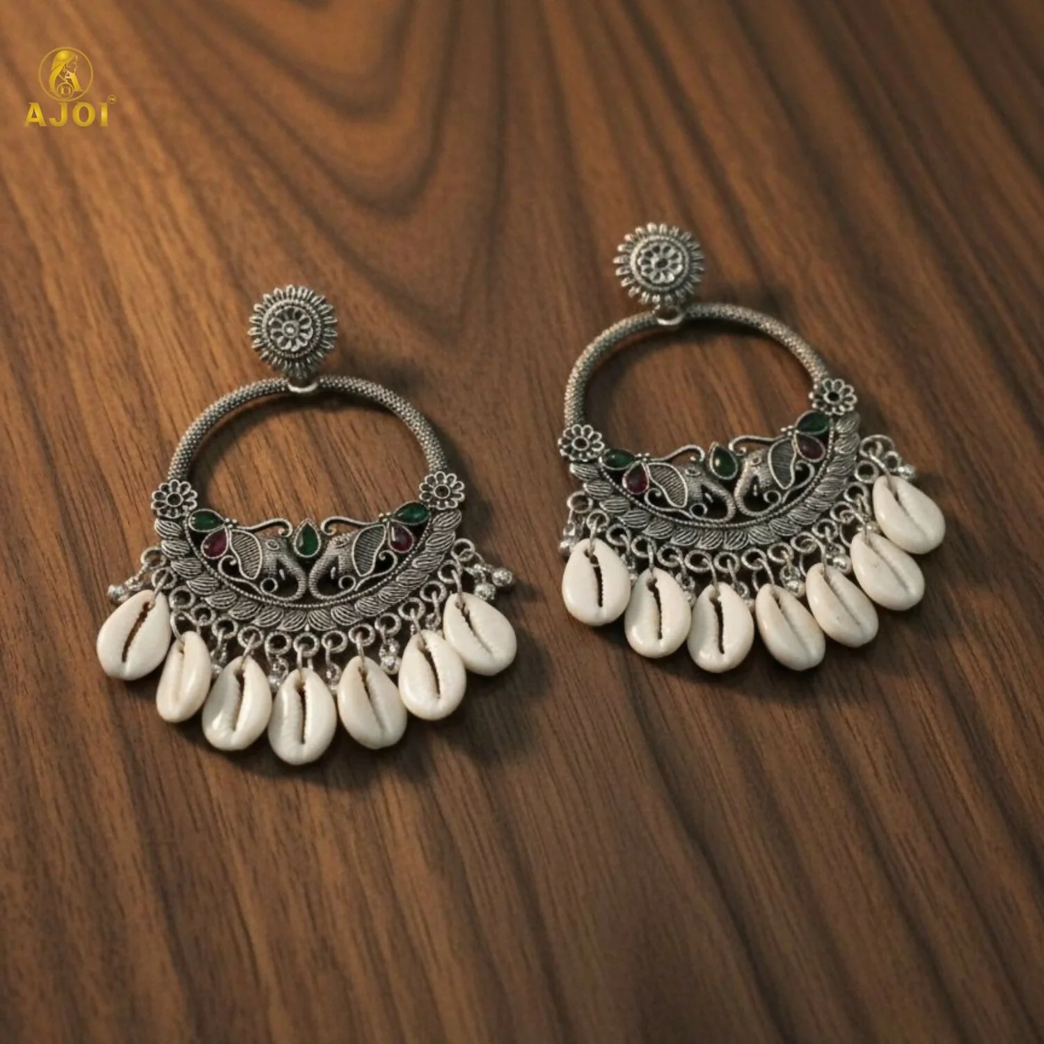Be the first to review Royal Elephant Oxidized Silver Shell Chandbali Earrings with Handcrafted Motifs!