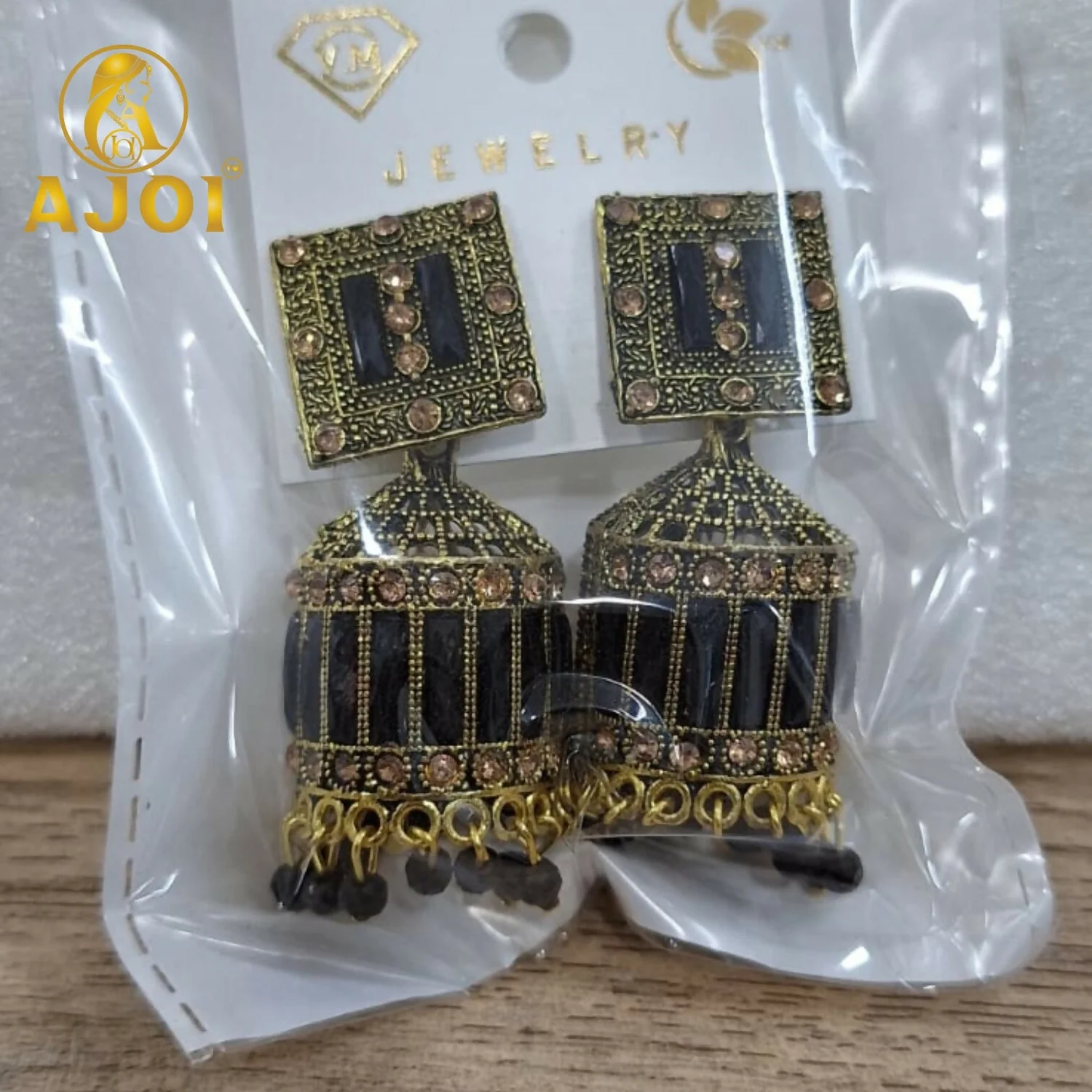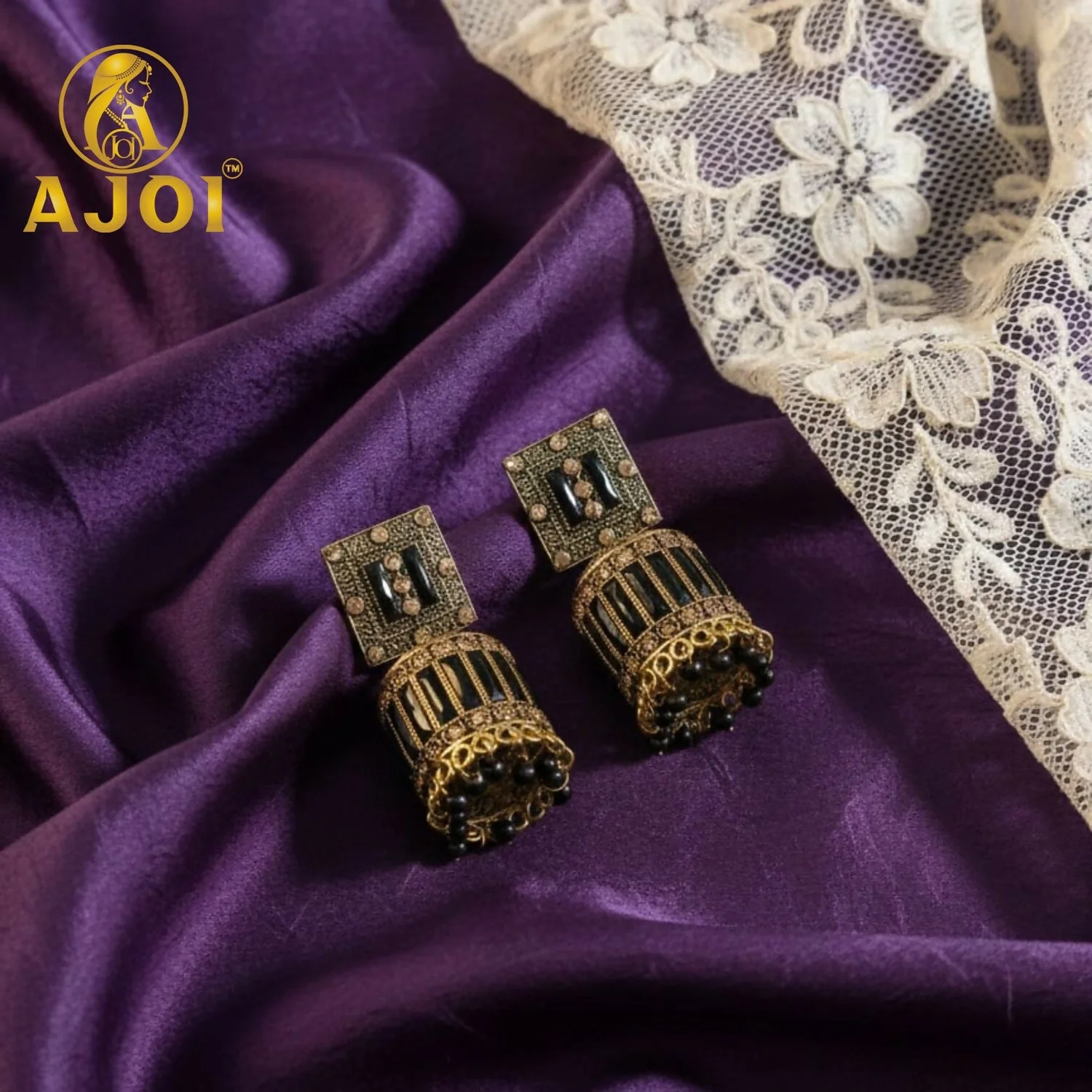 Be the first to review Royal Midnight Black Designer Earrings with Elegant Drop and Statement Detailing!