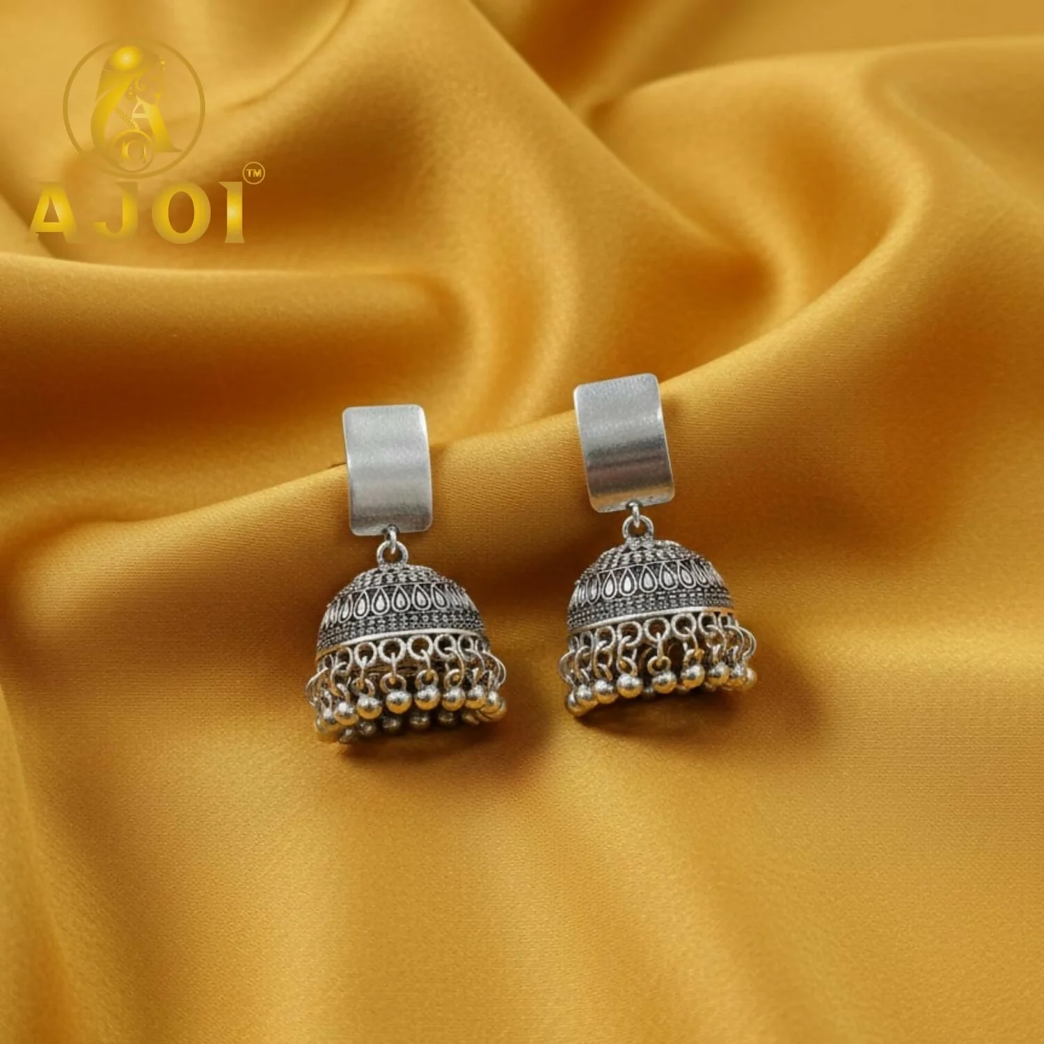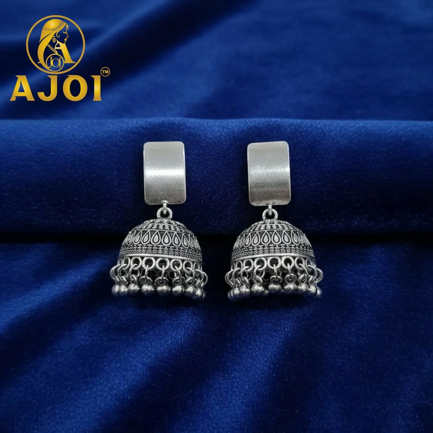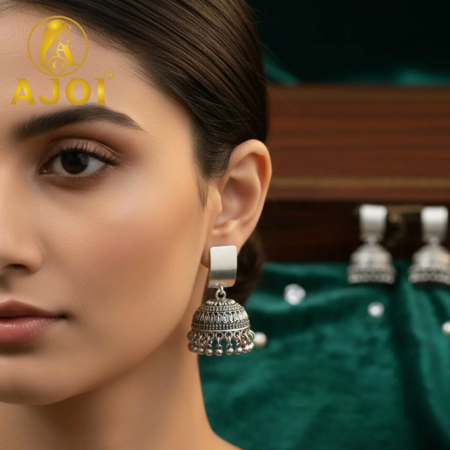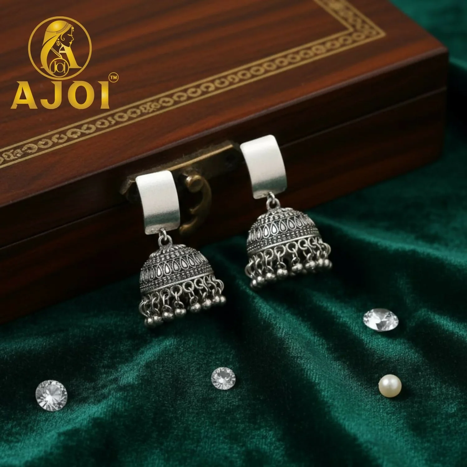 Be the first to review Royal Oxidised Silver Dome Jhumka Earrings with Traditional Ghungroo Detailing!