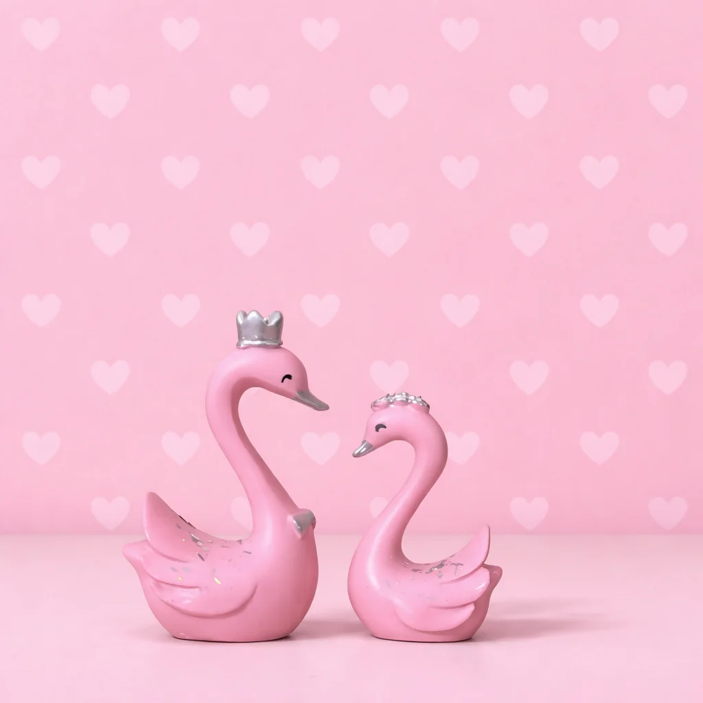 Add a touch of elegance and love to your space with this adorable Royal Pink Swan Couple Showpiece. Designed in soft pink with silver crown details, this pair symbolizes love, togetherness and harmony — perfect for bedrooms, living rooms, shelves, or gifting. A beautiful décor piece for anniversaries, weddings, Valentine’s Day or as a sweet surprise for someone special.