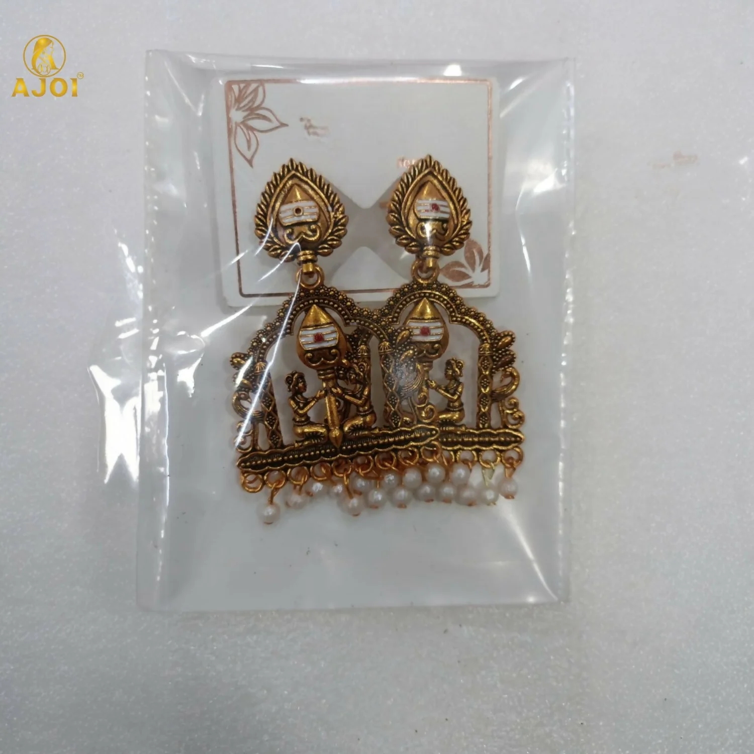 Immerse yourself in regal elegance with these exquisitely designed gold-tone temple earrings, inspired by classical Indian architecture and royal court artistry. Featuring a beautifully sculpted pavilion-style motif with miniature figurine detailing, these earrings narrate a story of tradition, devotion, and timeless craftsmanship.
