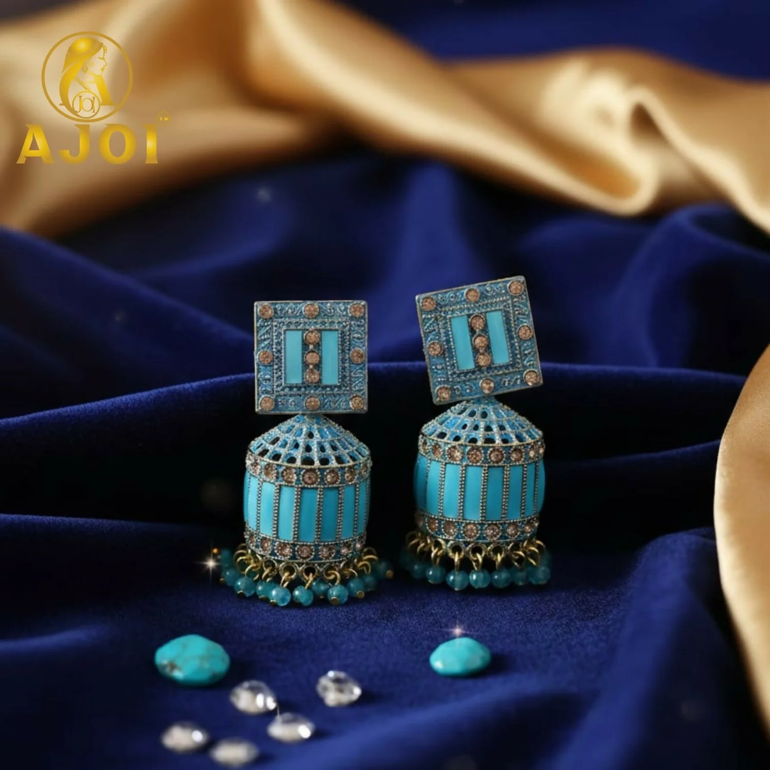 Be the first to review Royal Turquoise Blue Designer Earrings with Elegant Drop and Stone Accents!