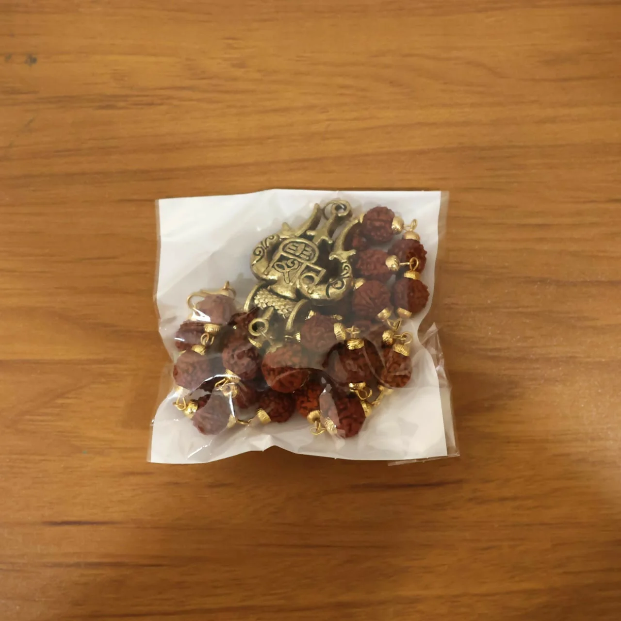 This stunning spiritual necklace is crafted with natural Rudraksha beads, known for their deep religious and spiritual significance. Each bead is carefully placed with golden connectors, creating a balanced and elegant design.