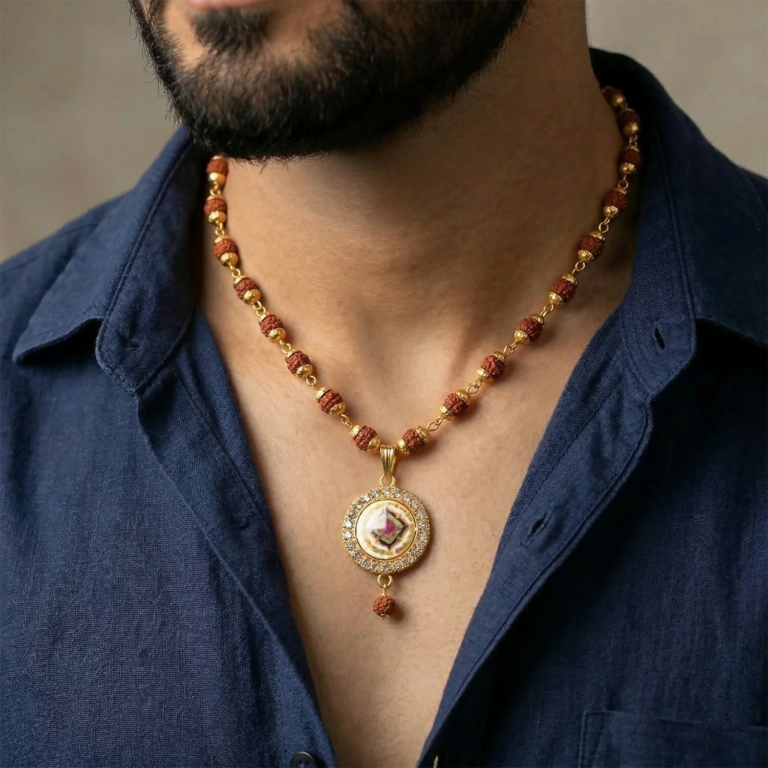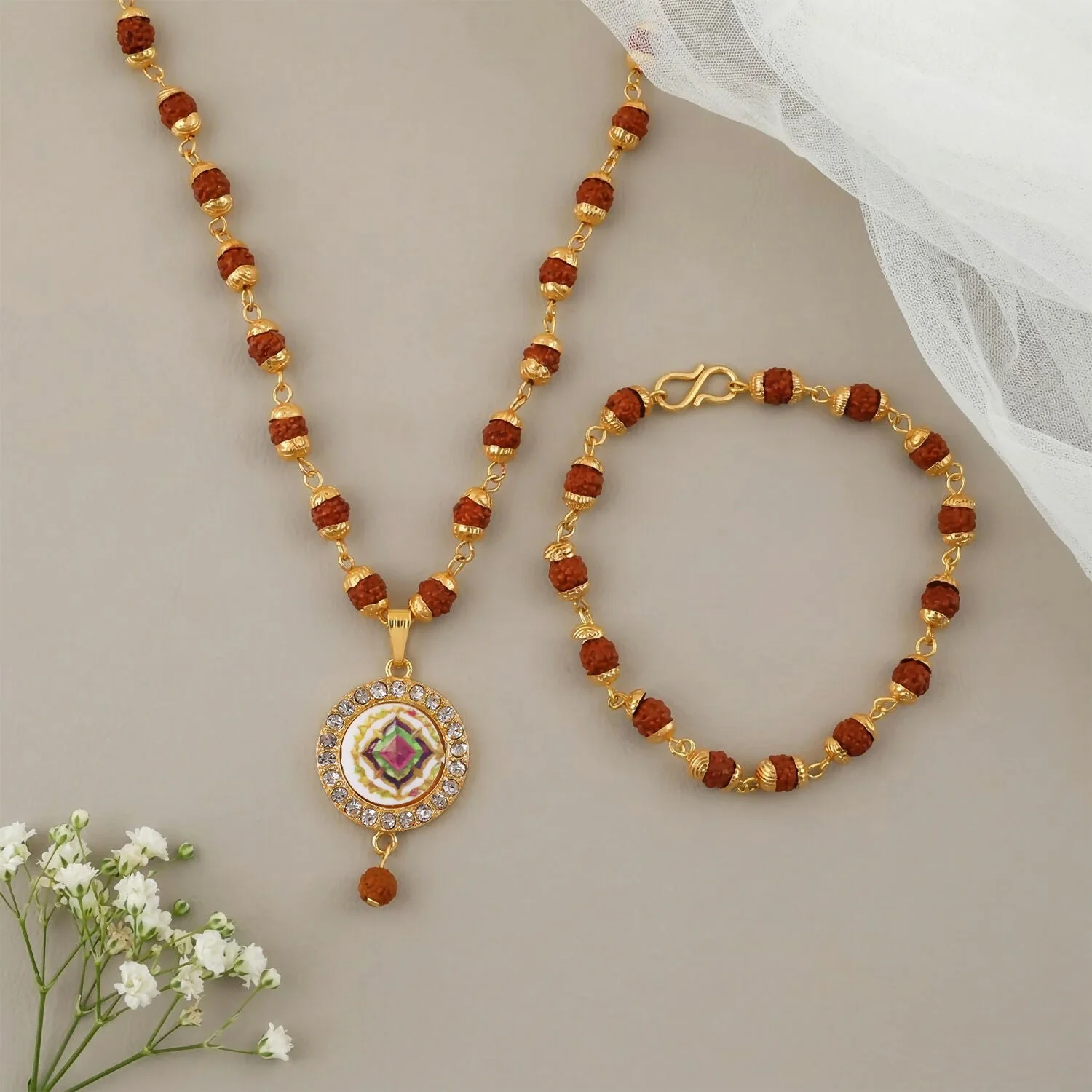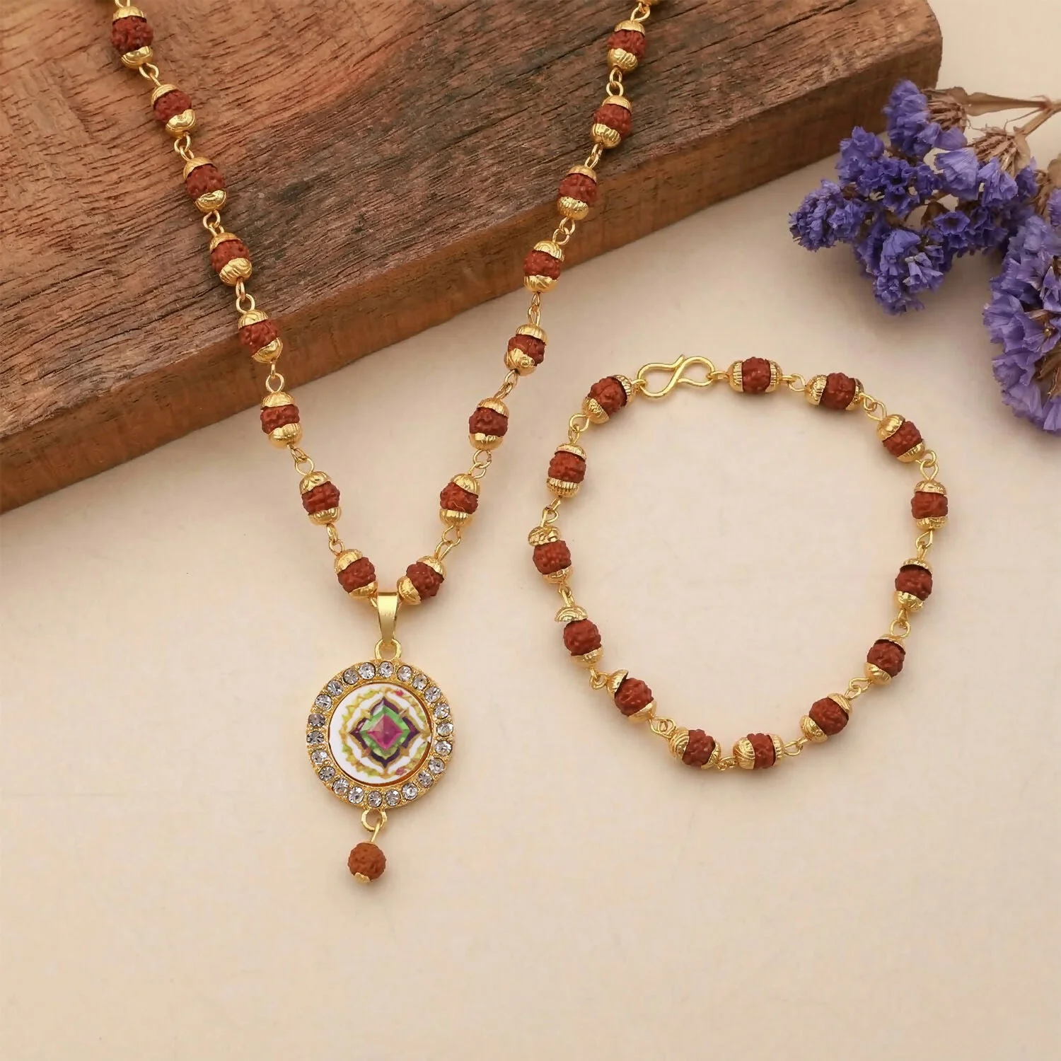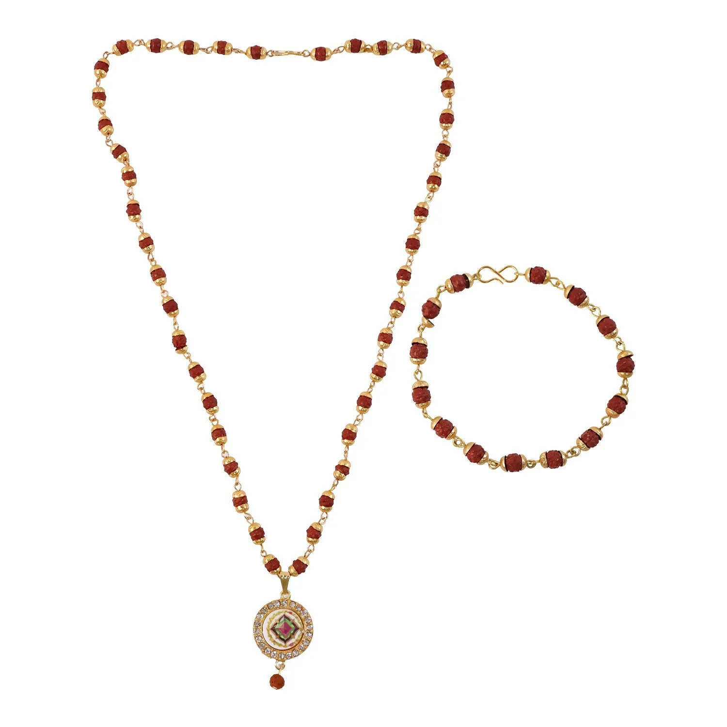Rudraksha Gold Necklace & Bracelet Set with Designer Pendant | Lentlo Shop