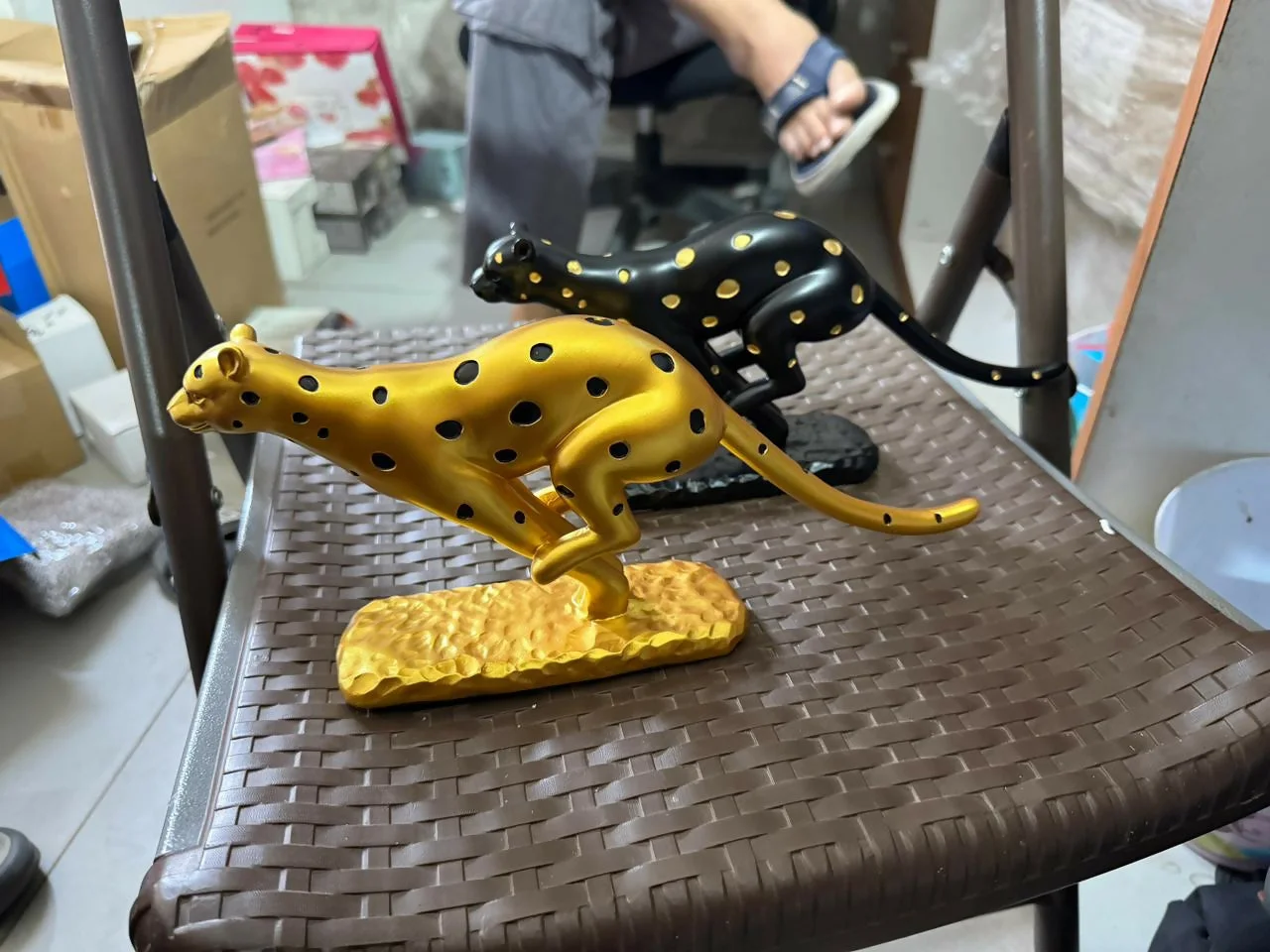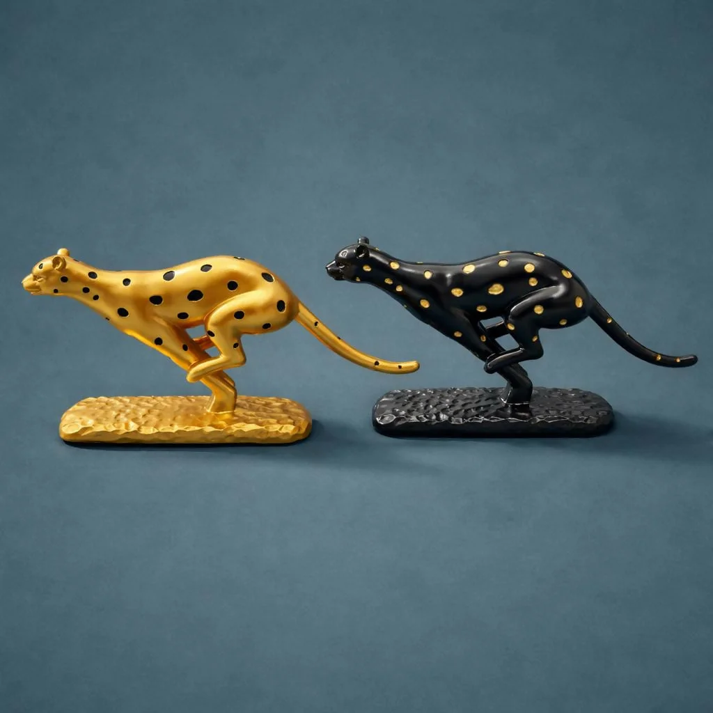 leopard showpiece, animal statue, decorative sculpture, tabletop decor, home decor item, office desk decor, modern decor, luxury decor, running animal figurine, shelf decor, artistic showpiece, gift item