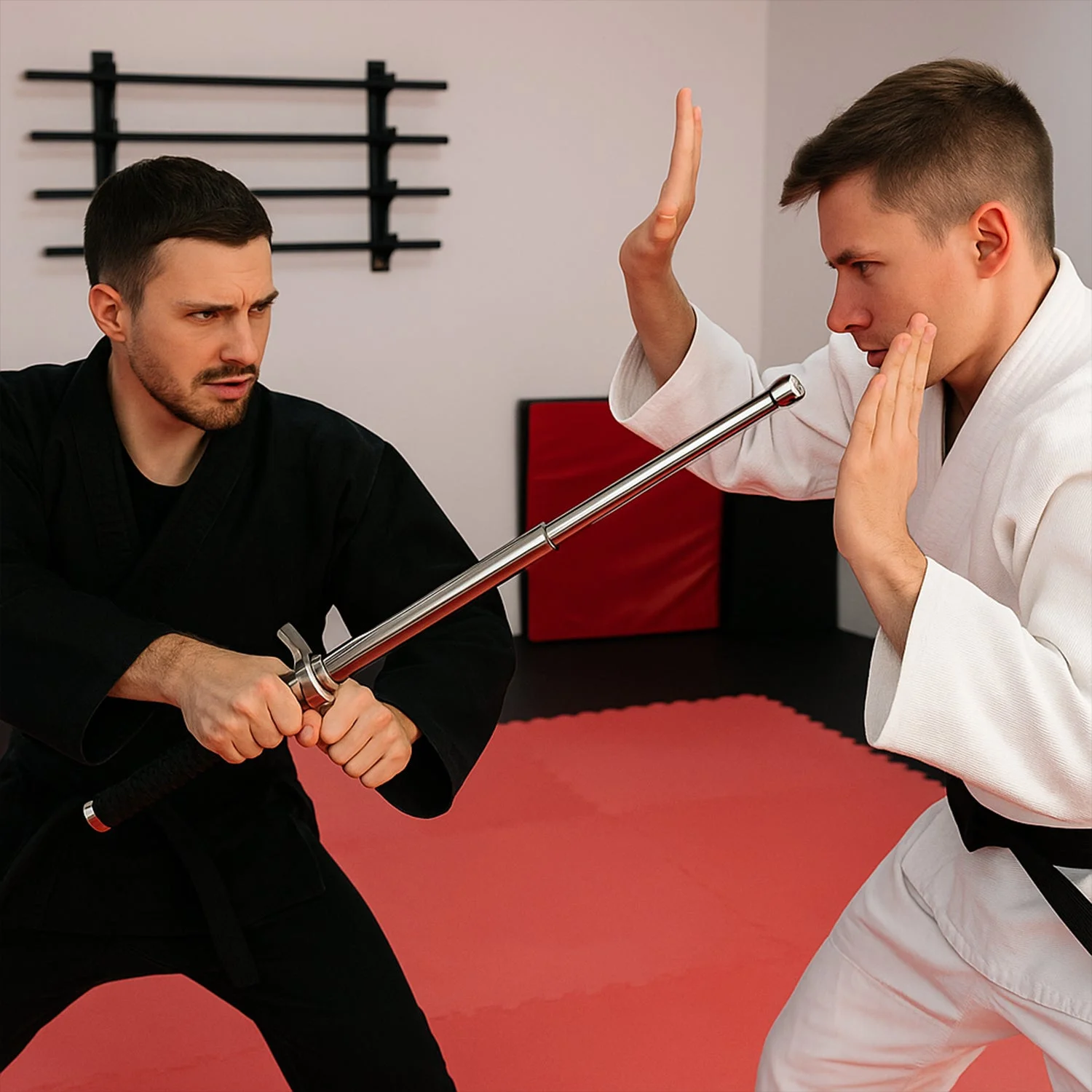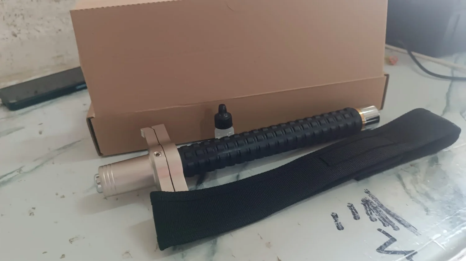 Foldable safety rod. Opens when you jerk your hand. Useful item for everyone, either in home, Best for ladies or girls for their safety. Just jerk your hand, it will open automatically. Can also be used for self-protection. Hand-strap makes more comfortable to grip.