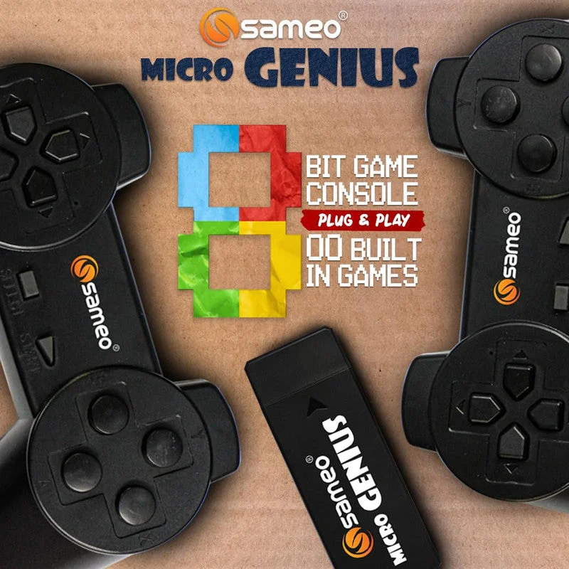 The Sameo Micro Genius HDMI Gaming Console is a powerful and compact entertainment system designed to bring back the joy of retro gaming with modern convenience. Featuring 800 built-in 8-bit games, it offers endless fun for kids, teens, and adults without the need for cartridges or downloads. Its plug-and-play HDMI stick connects directly to your TV for smooth 4K-compatible gameplay, while the two included wireless controllers ensure comfortable multiplayer action without messy cables. Easy to set up and portable, this console is perfect for family game nights, parties, or casual gaming, making it a must-have for anyone who loves nostalgic video games in a sleek, wireless format.